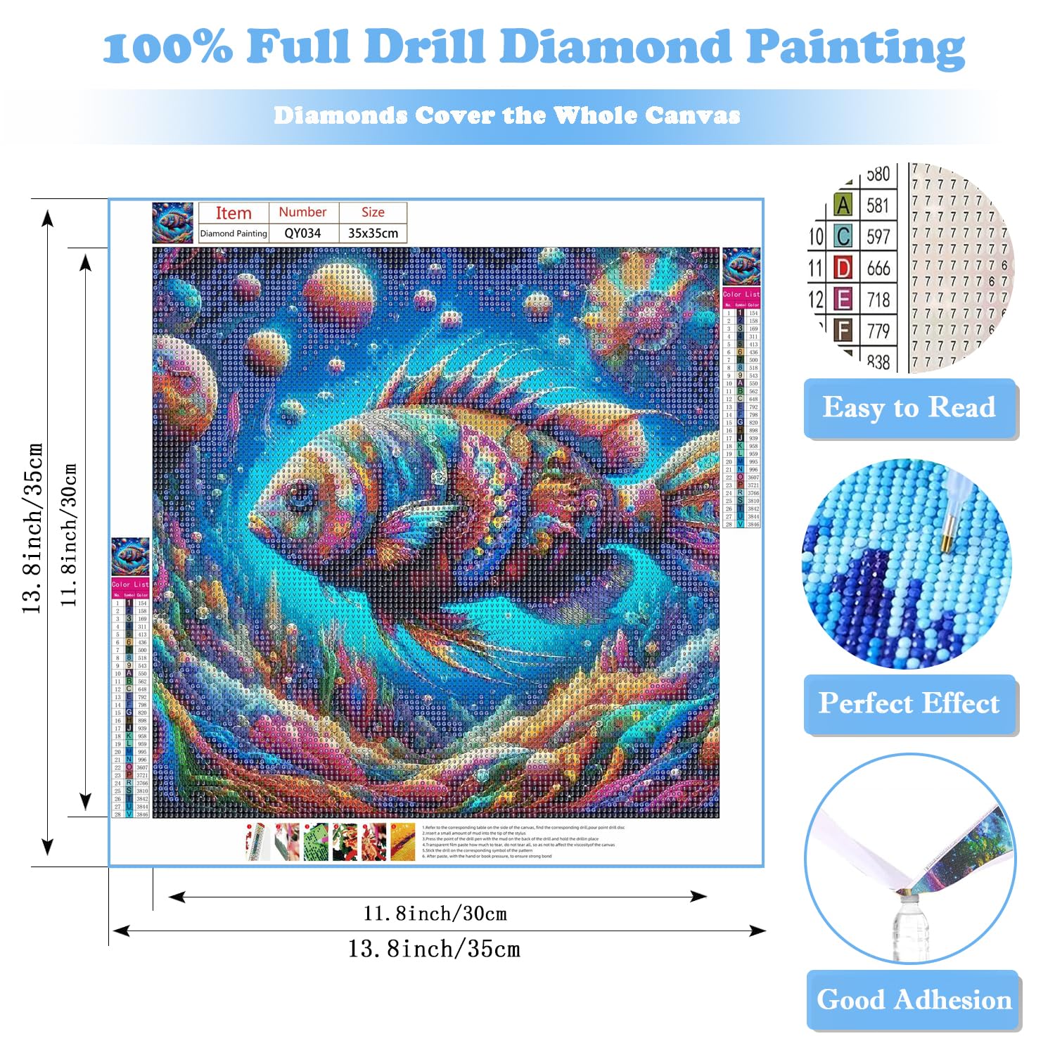 Fish Diamond Art Kits for Adults, 5D Diamond Painting for Beginners, Diamond Dot, Animal Dimond Art Paintings Kit, Small Gem Painting Kit, Crafts for Adults, Crystal Home Wall Decor Gifts (14x14inch)