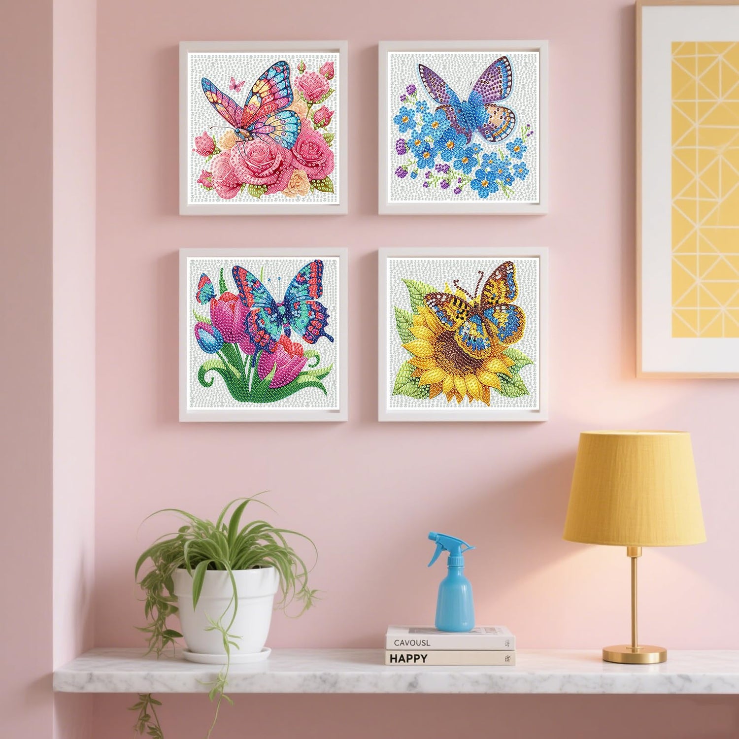 - [5D Diamond Art Kit – 4 Pack Cute Buterfly] – The diamond art kits are designed with delicate flower and butterfly patterns, and good printing technology makes them look vibrant.bringing a little different color to your desktop or room. Each diy painting art features a unique and colorful design, adding a touch of artistic flair to your living room, bedroom, study or dining room.