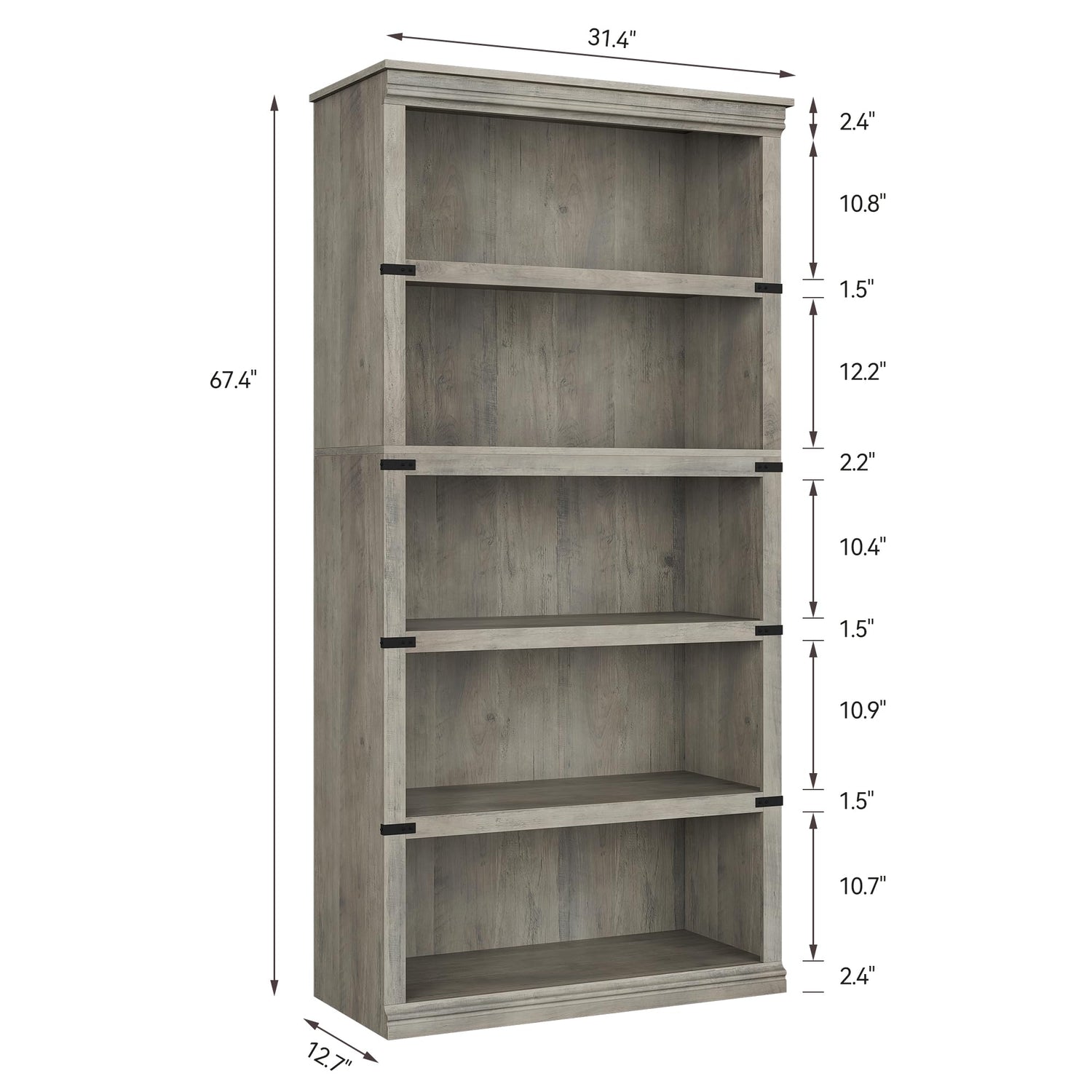 GAOMON 5 Tier Bookcase, Farmhouse Book Shelf with Storage Open Display Bookshelves, 67.4" Tall Book Case Wooden 5 Shelf Bookcase Home Decor Furniture for Home Office, Living Room, Bed Room - Grey