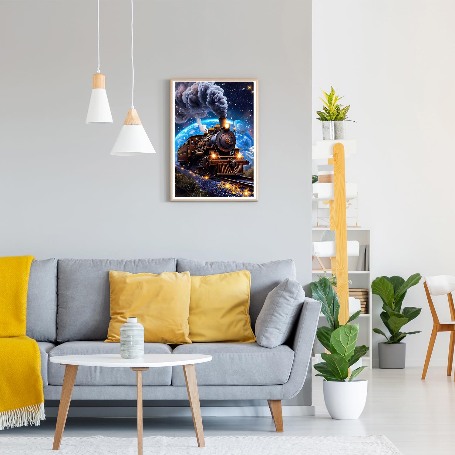 GDYEEH DIY Fantasy Train 5D Diamond Art Kits, Round Full Drill Sparkling Starry Sky Diamond Painting Picture, Steam Train Painting by Numbers Art Kits for Adults Beginners Home Wall Decor 12x16 inch
