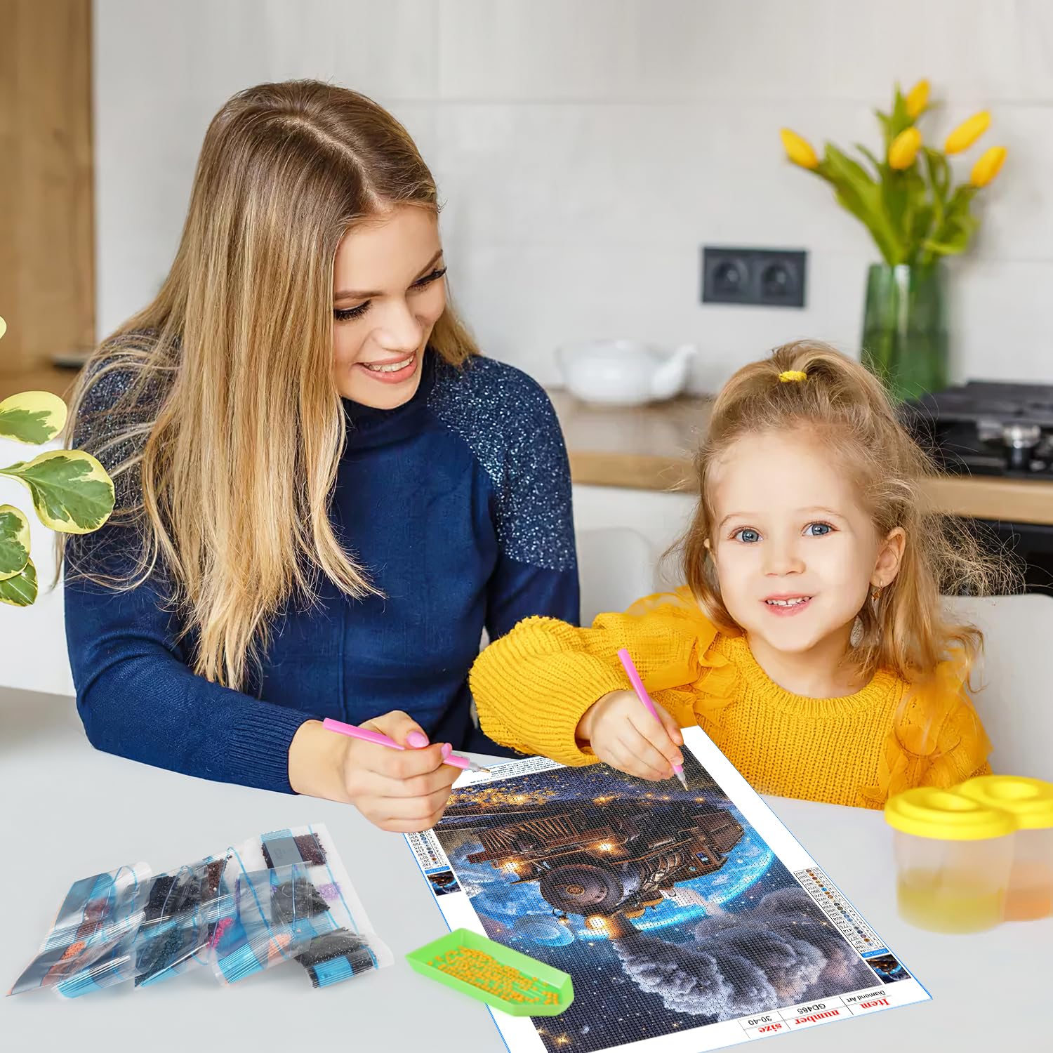 - 【Complete Diamond Art Painting Kits】Each 5D diamond art kit comes with everything you need to get started, so there's no need to buy any other tool kits. The round diamonds are fully drilled throughout the picture and each diamond sparkles. If you have enough time and patience to complete this challenge, you will get a beautiful piece of art.