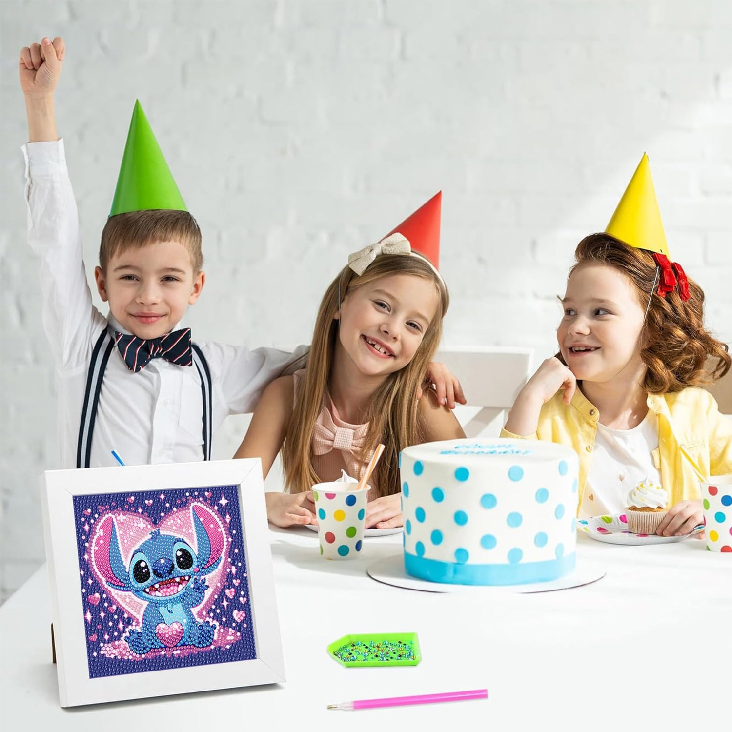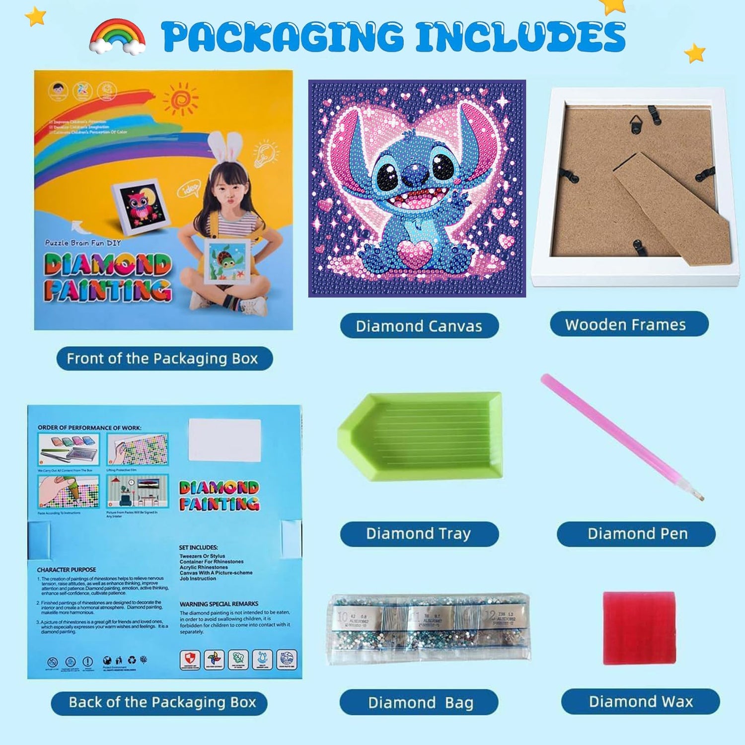 Gearock Diamond Art Kits with Wooden Frame, Easy DIY Small 5D Diamond Painting Kits, Heart Cute Big Gem Kits for Adults Beginners Cartoon Lovers Halloween Christmas Birthday Gifts, 7x7 Inch