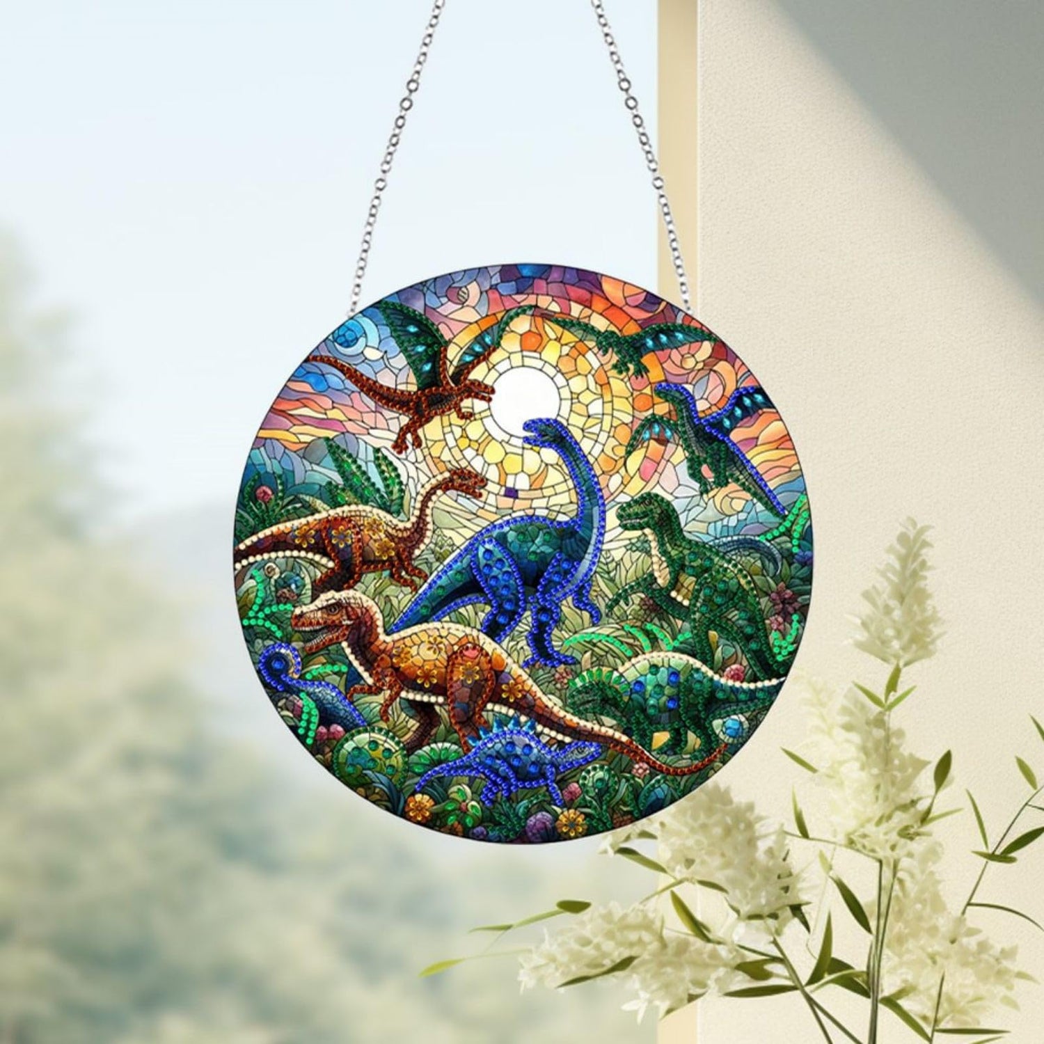 Generic DIY Hanging Diamond Pendant Special Shaped Crystal Diamond Art Painting Ornament Double-Sided Pattern Single Sided for Window Home Garden Wall Door Decor-Dinosaur