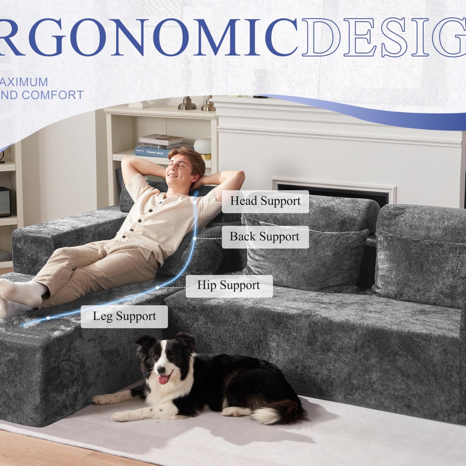 - No Assembly Required: Skip the hassle of furniture assembly with this modular couch. Simply unbox, fluff, and enjoy. It may take up to 48-72 hours to fully expand, but trust us, it’s worth it. Enjoy the relaxed joy without assembly to the fullest!