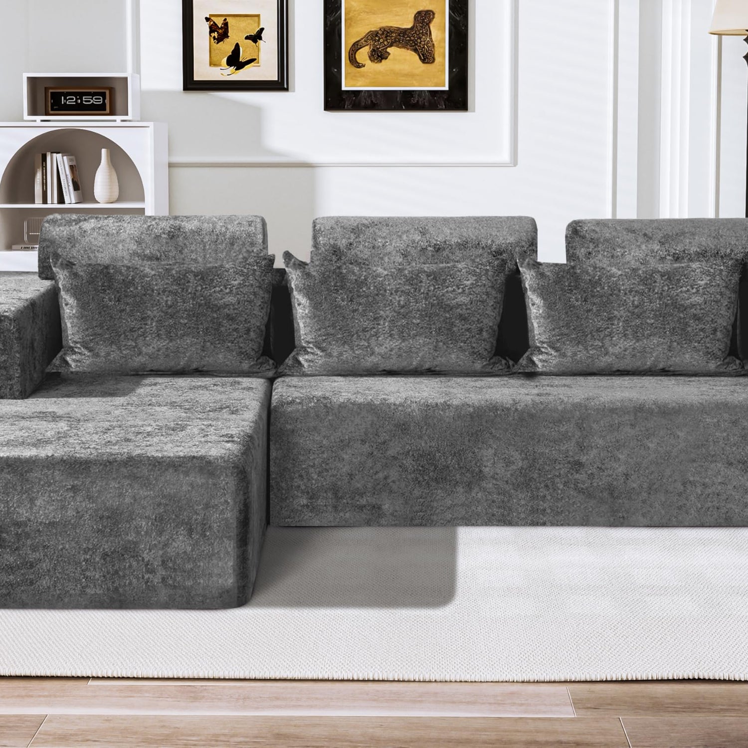 HABUTWAY 105" L-Shape Modular Sectional Sofa Couch for Living Room,No Assembly Required,Modular Comfy Sofa with Deep Seat for Living Room Bedroom,Luxury Distressed Velvet(Left,Grey)