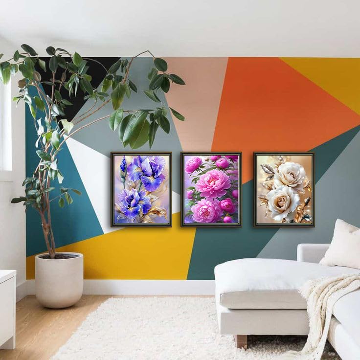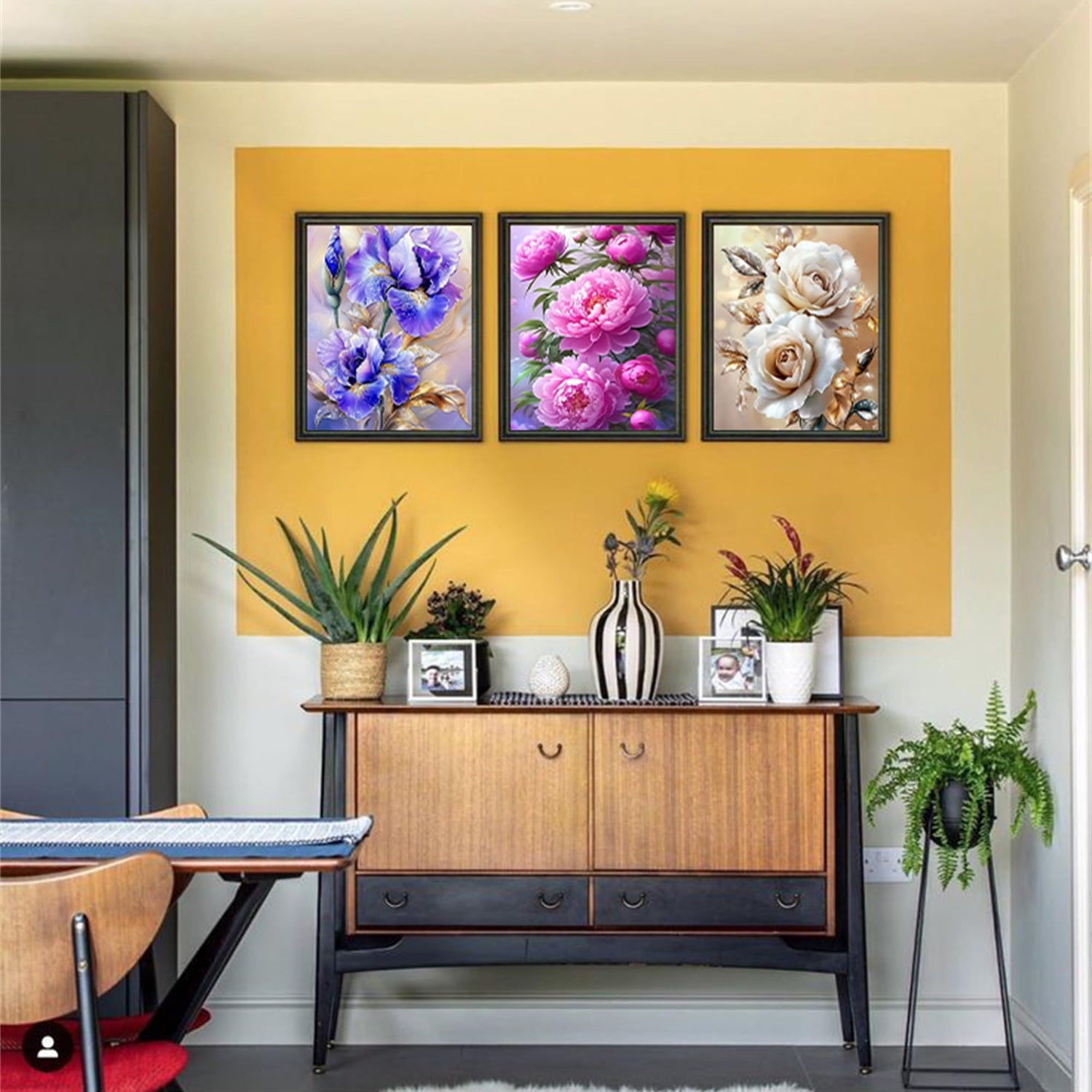 Hestarcul 5D Flower Diamond Painting Kits 3 Pack,Diamond Art Kits for Adults,Paint with Diamonds Round for Gift,Wall Decor (Flower)