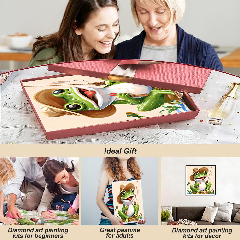 hill froeistung 5D Animals Diamond Art Painting Kits,DIY Full Round Drill Frogs Diamond Art for Adults,Beginners,Teens,Fishing Diamond Art Painting Kit for Wall Decor,12x12inch