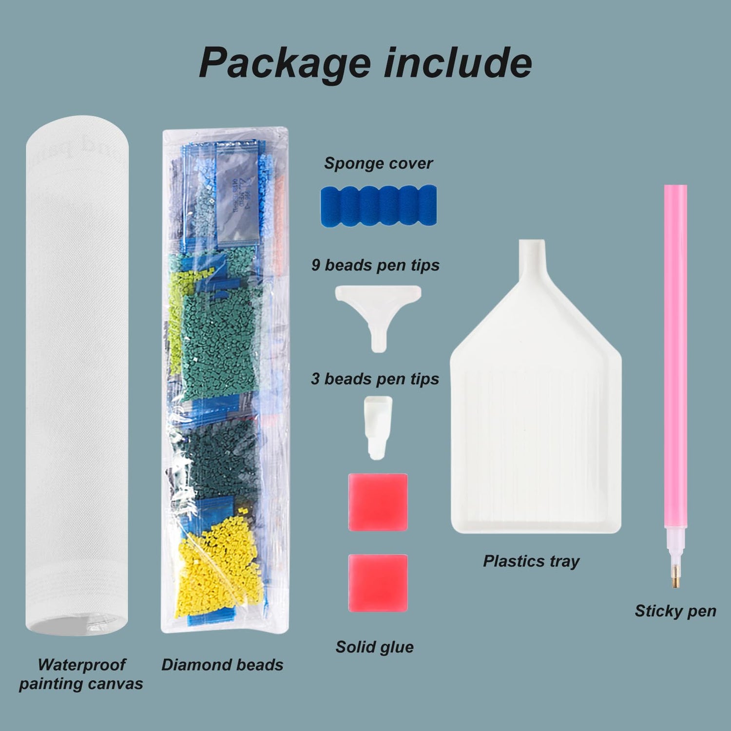 • Premium Quality Materials - Our diamond art painting kits use high-quality canvas, the canvas is clear, waterproof. The canvas uses water-based glue, which is strong. Make sure that the drill bit will not fall off. The 5D diamond art painting kit can be kept for many years without fading
