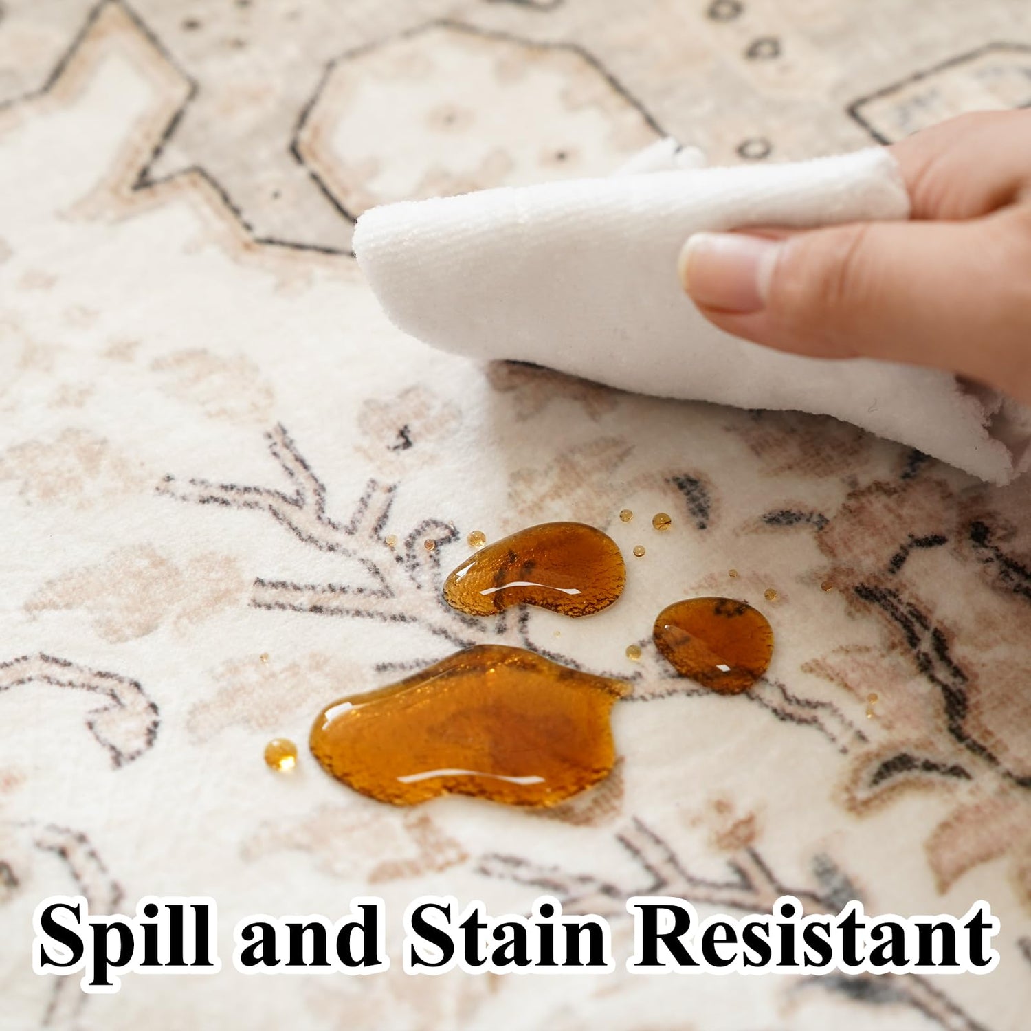 HILORUUG Washable Area Rug 9x12 - Bedroom Living Room Large Indoor Oriental Rugs - 0.13inch Low Pile Stain Resistant Rugs with Rubber Backing for at Least 108 sq ft Spaces (9x12 Ivory/Multi)