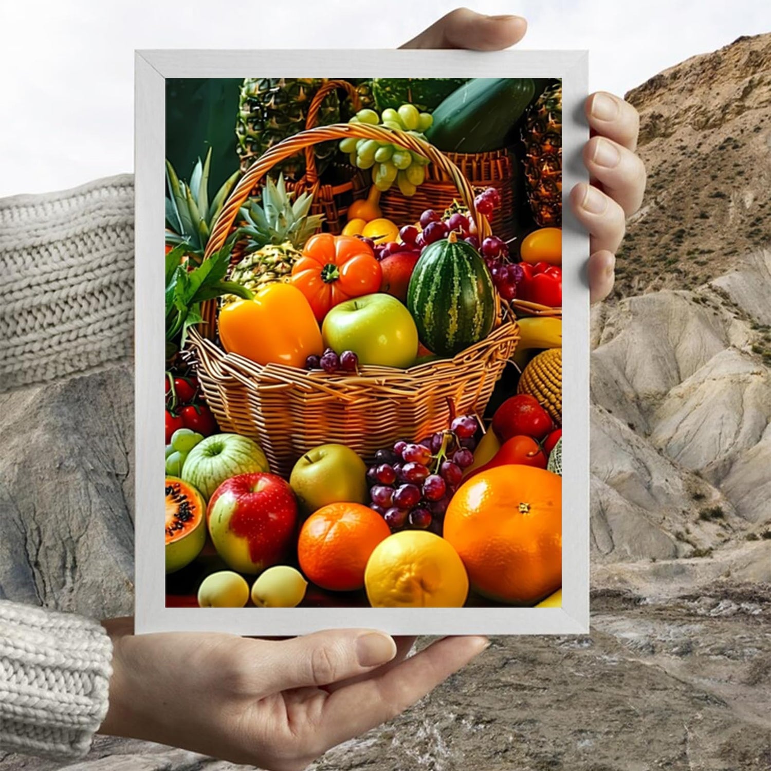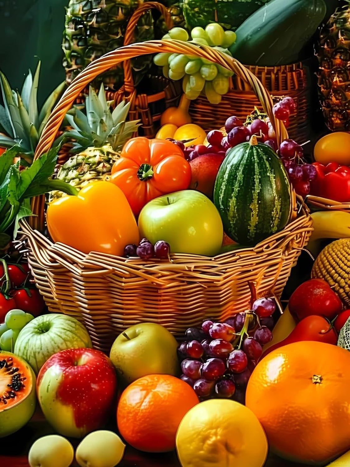 HMDIIMGE Fruits Basket Diamond Painting Kits for Adult, Food Diamond Art, Full Round Gemstone Crystal Art Embroidery Handmade Kit 12x16 inch