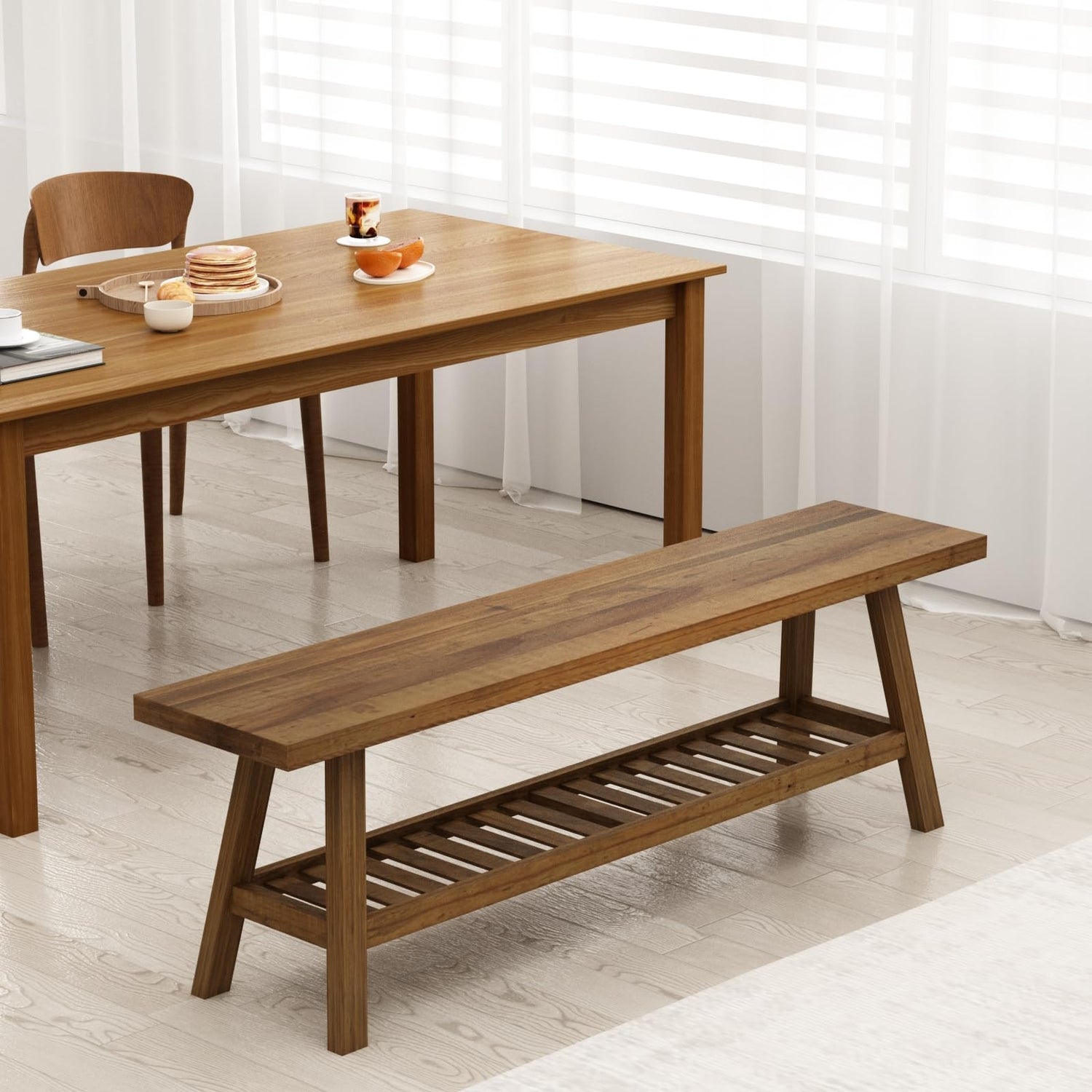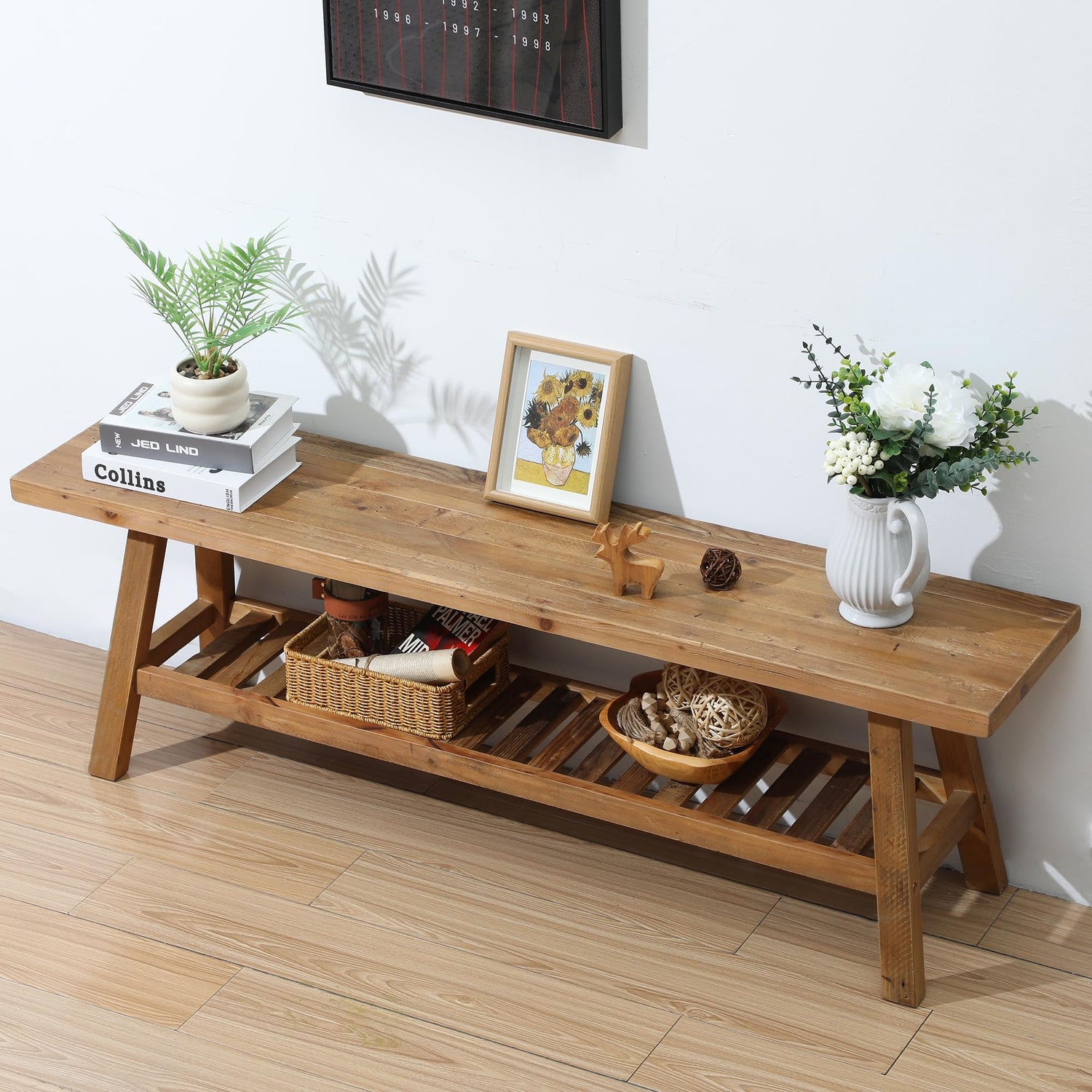 HOKYHOKY Reclaimed Solid Wood Bench-55 Inches Farmhouse Entryway Bench with Storage Shelf, Narrow Rustic Bench for Hallway, Kitchen, Bedroom, Dining