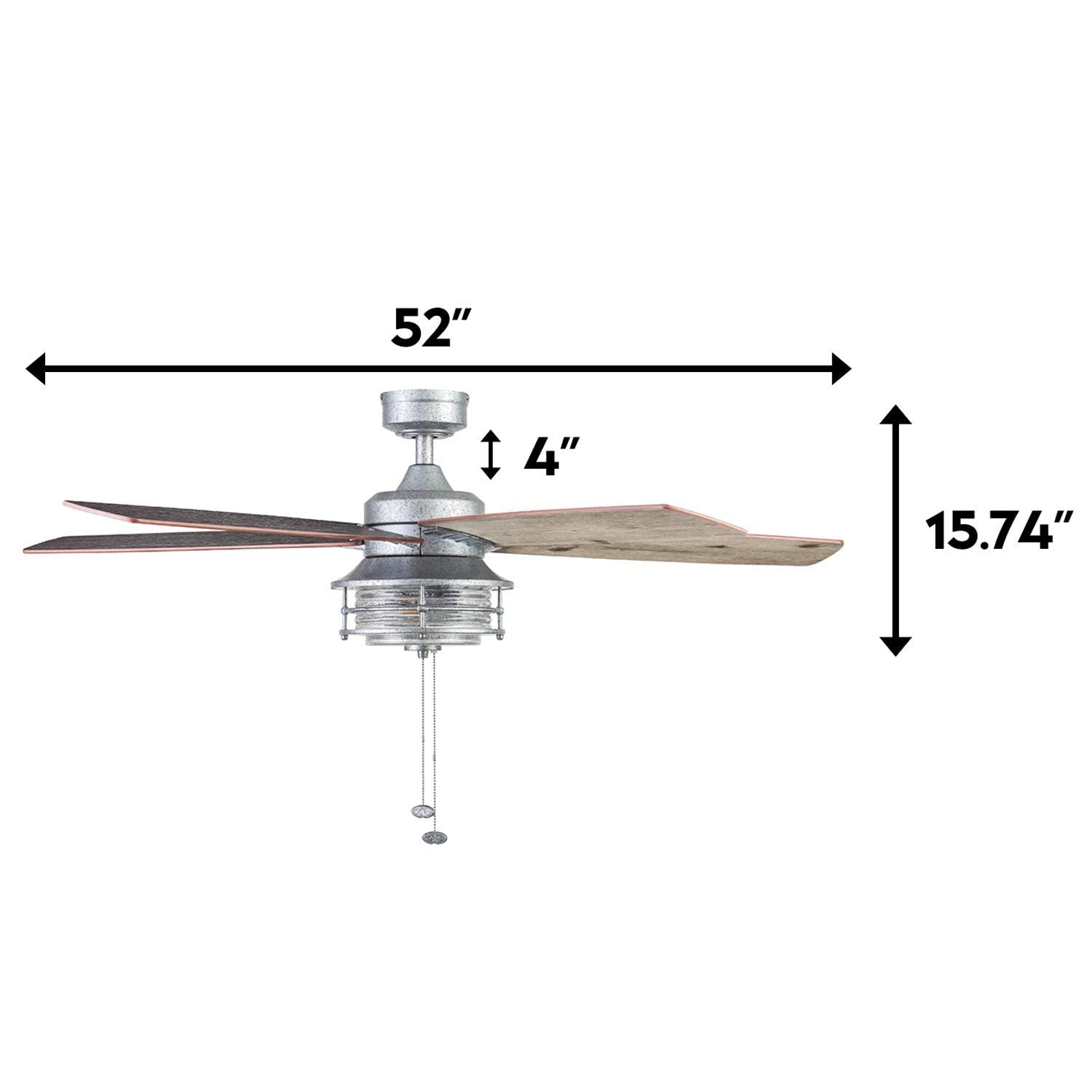 Honeywell Ceiling Fans Foxhaven Farmhouse 52 Inch Ceiling Fan with Light, Outdoor Fan/Indoor Dual-Mount LED Ceiling Fan, 5 Blades, Ebony and Silver Oak Blade Finish Options, Galvanized (51631-01)