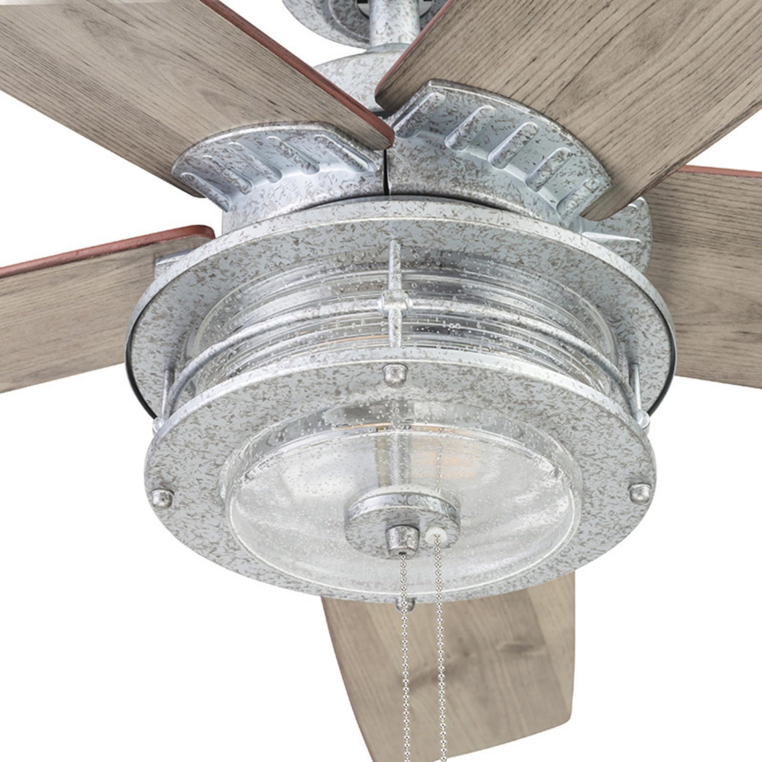Details: The Foxhaven damp-rated modern farmhouse ceiling fan with light combines stylish details with modern influences for a truly inspiring fixture for your home. Its bold hardware and lantern-style dimmable Edison LED lighting accompany an innovative 5-blade design that provides adjustable, energy-efficient airflow. Control your Honeywell fan with two easy-to-use pull chains, or pair with a universal ceiling fan remote (not included). For year-round comfort, change the direction of this modern ceiling fan with light to reverse airflow. During summer, this ceiling light with fan provides a cooling effect, and throughout winter, our strong fan can reverse to spread warm air, helping reduce energy costs. This gorgeous light bulb fan blends with many decor styles. When paired with your decor, this farmhouse ceiling fan can transform into a mid-century modern ceiling fan, boho vintage ceiling fan, or the industrial ceiling fan with light you've been seeking. The LED Edison bulbs provide 900 lumens and 2700k color temperature. Whether you need a porch fan, patio fan, a garage fan, an outdoor kitchen ceiling fan, breezeway fan, sunroom fan, or four seasons room fan, this wood ceiling fan with light has you covered.