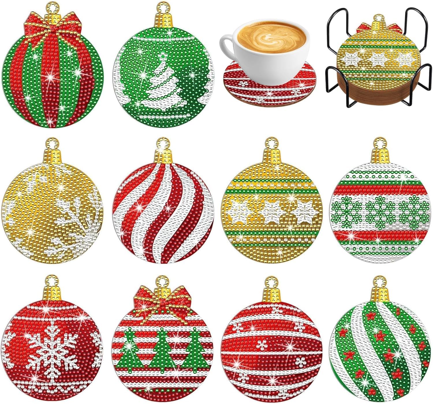 - Vivid and Charming Patterns: The diamond art coasters kit offers 10 beautifully designed Christmas diamond art coasters with a complete set of diamond painting tools. The rich colors and full diamond coverage make each coaster a sparkling centerpiece for your holiday table.