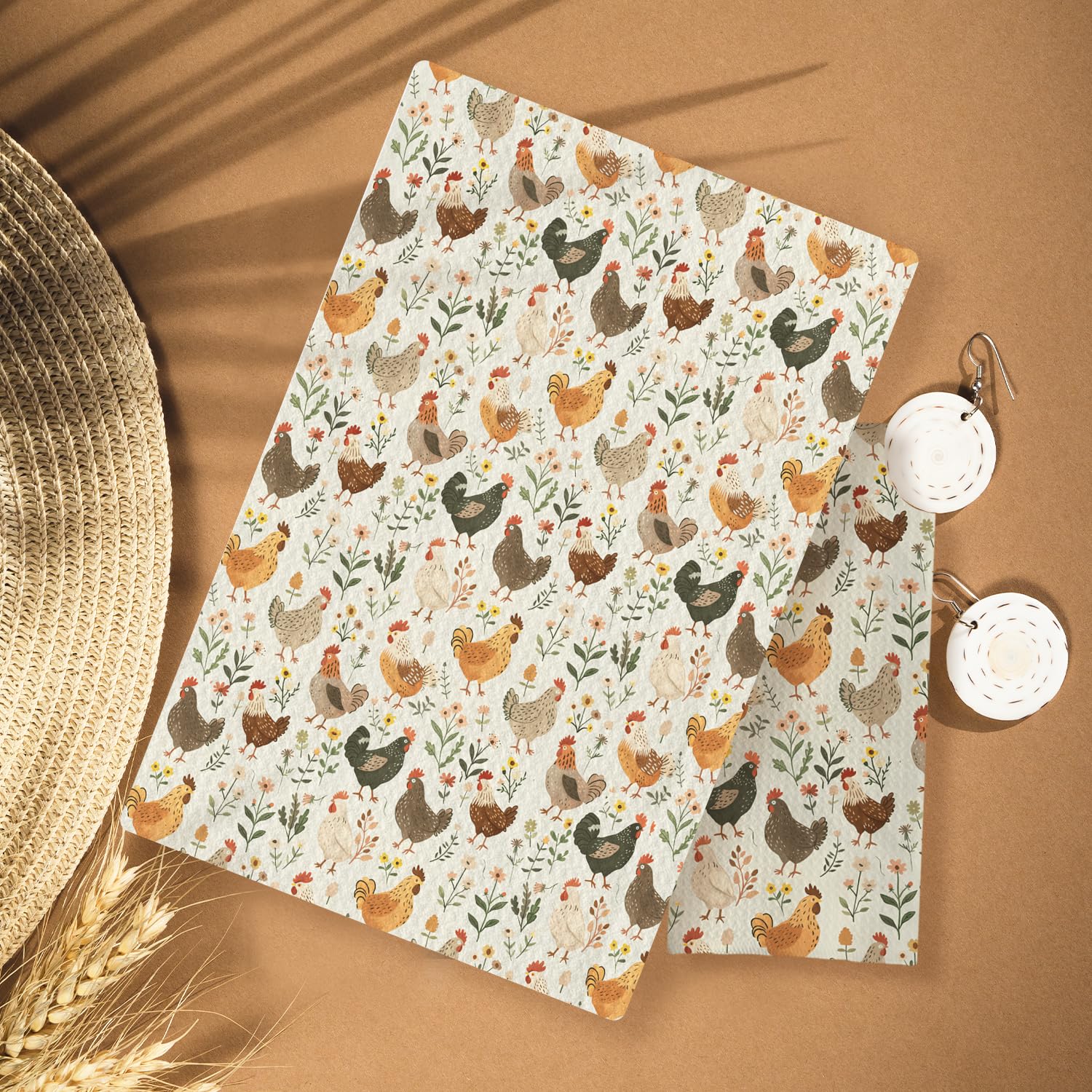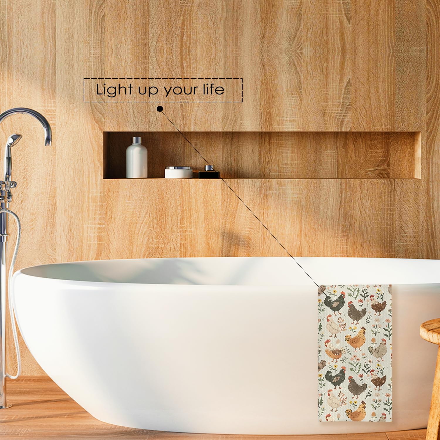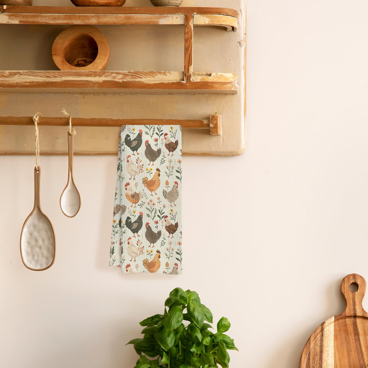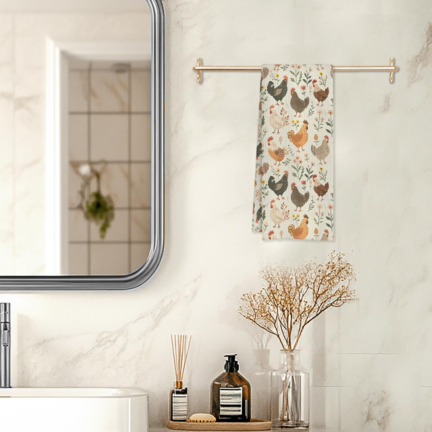 HUGANE Farmhouse Chicken Rooster Kitchen Towels, Chicken Dish Towels, Rooster Decor Hand Towel for Bathroom Kitchen Decor, Cock Mom Lady Gifts, 16x24 Inch