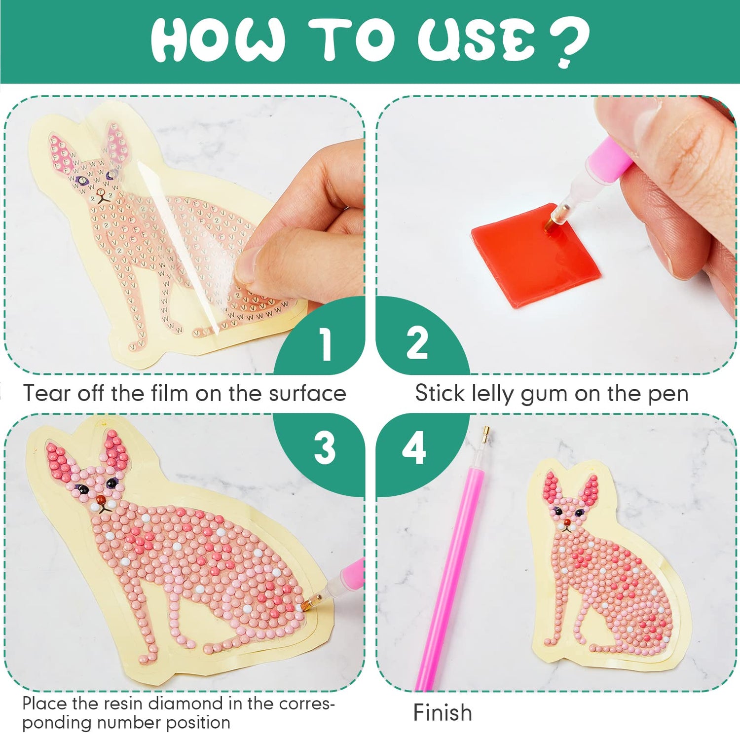 Hungdao 24 Pcs 5D DIY Diamond Sticker Painting Creative Sticker Kids Painting Kits Resin Rhinestone Gem Art Kits for Kids Adult Activity New Year Party Gifts (Cat)