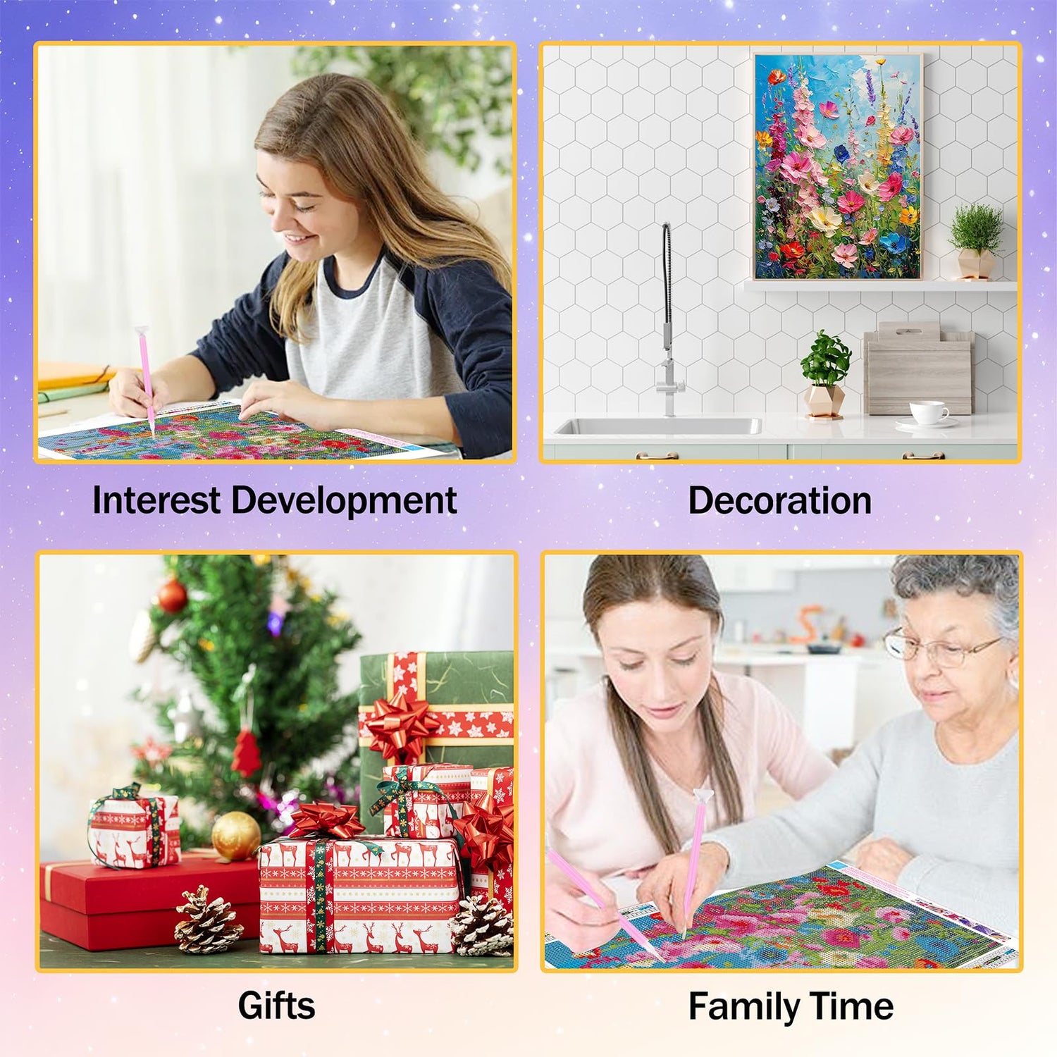 - 1.Wildflowers diamond painting kits:Diamond painting is a very popular craft recently,it is easier to make than cross stitch,but the finished work is glossier and more realistic.