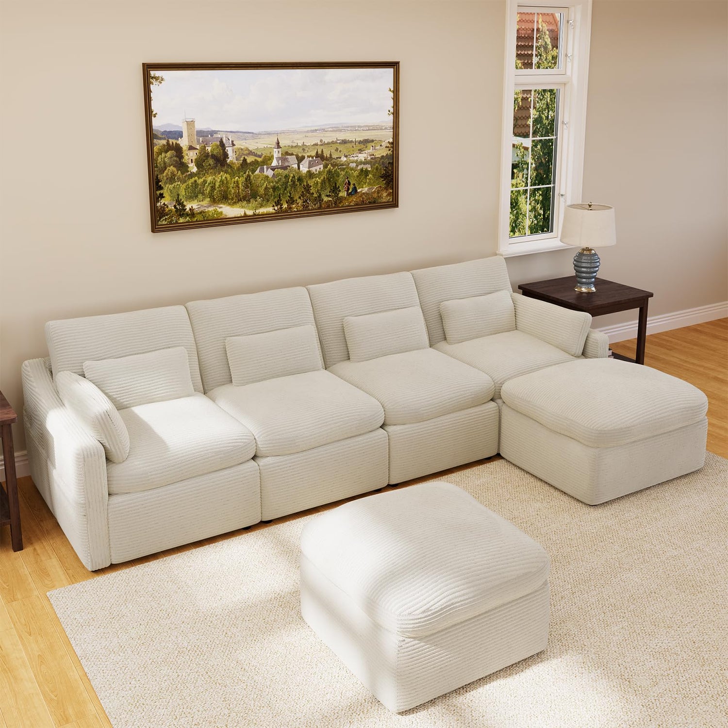 ISHUHL Cloud Modular Sectional Sofa, 124" Oversized Sectional Couches for Living Room, Convertible Deep Seat Sofa Set, Corduroy U Shaped Couch with 2 Ottoman (Beige)