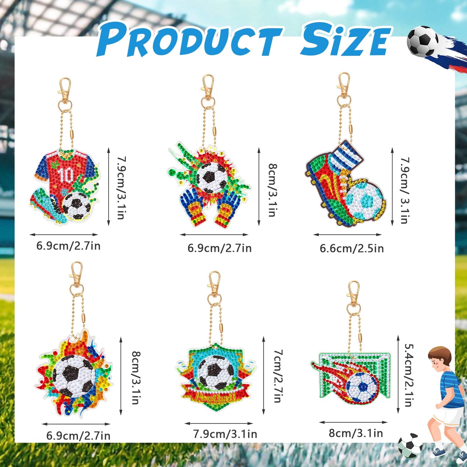 - Package Details: You will receive a Diamond Art Painting Keyrings Kit containing 6 unique football-themed diamond art painting pendants, 6 keychains, a dot pen, a tray, a clay, and a sufficient quantity of diamond beads. These 5D DIY Football Diamond Key Rings accessories provide everything you need to create stunning diamond-pasted keychains