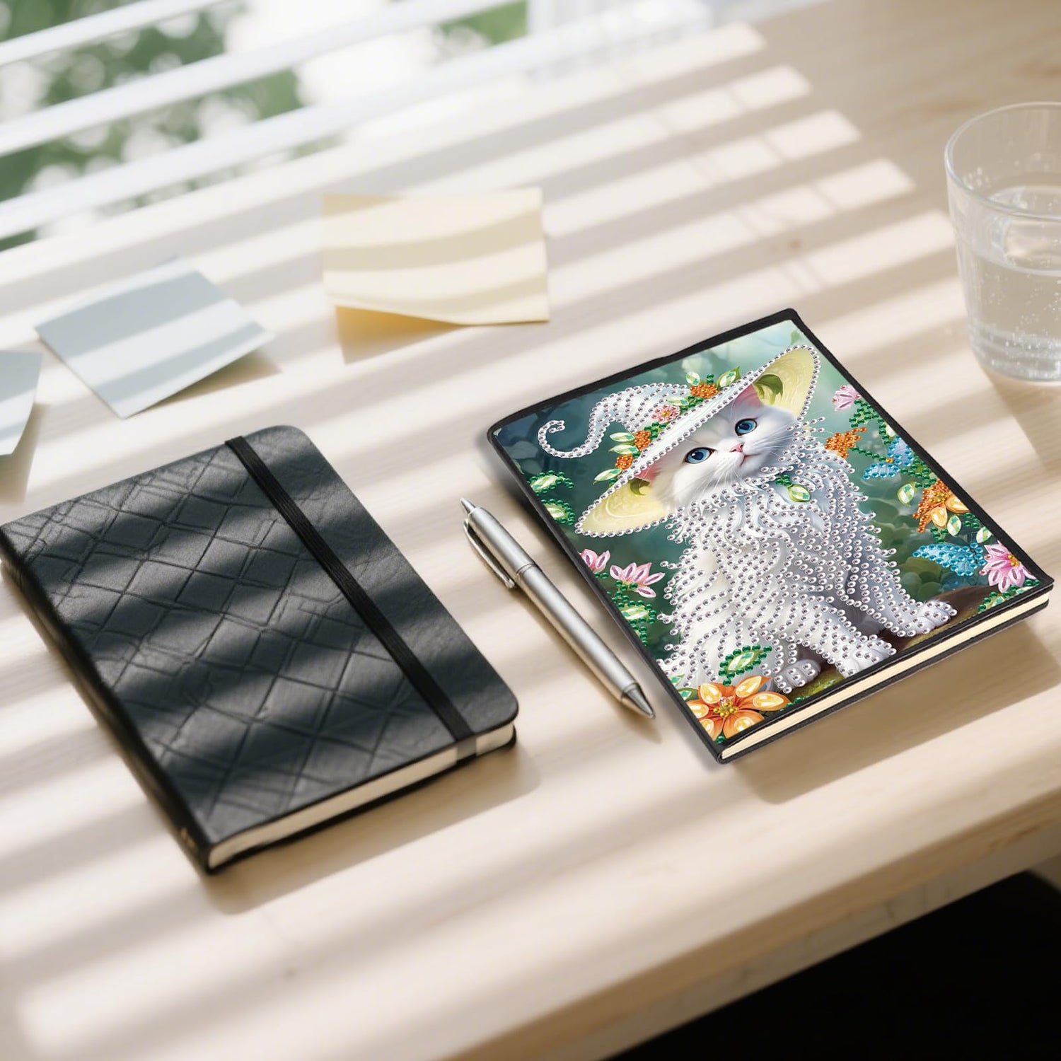 JZHYOAN Diamond Art Blank Note Book 5D Diamond Painting Notebook Kits for Adult DIY Cat Special Shape Art Dairy Travel Drawing Message Journal Sketchbook Mosaic Kit for Office Work