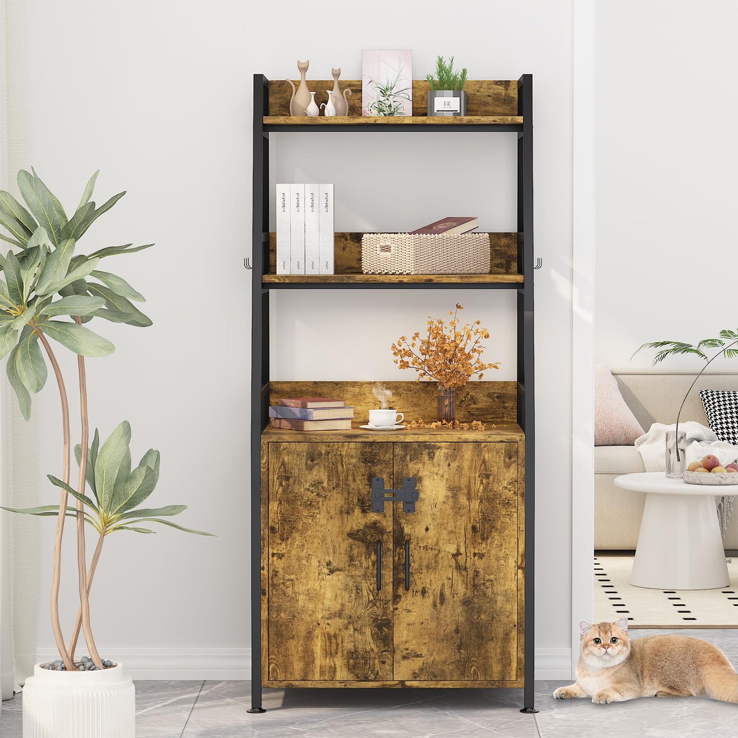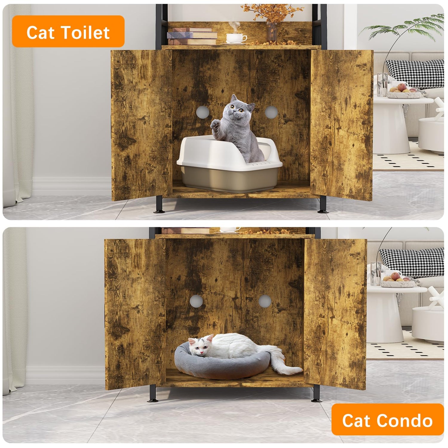 Katrawu Litter Box Enclosure with Shelves, Hidden Cat Enclosure Furniture,2-in-1 Tall Cat Litter Box Cabinet,Cat Washroom with Free Cat Scratch Pad,Rustic Brown 52in H