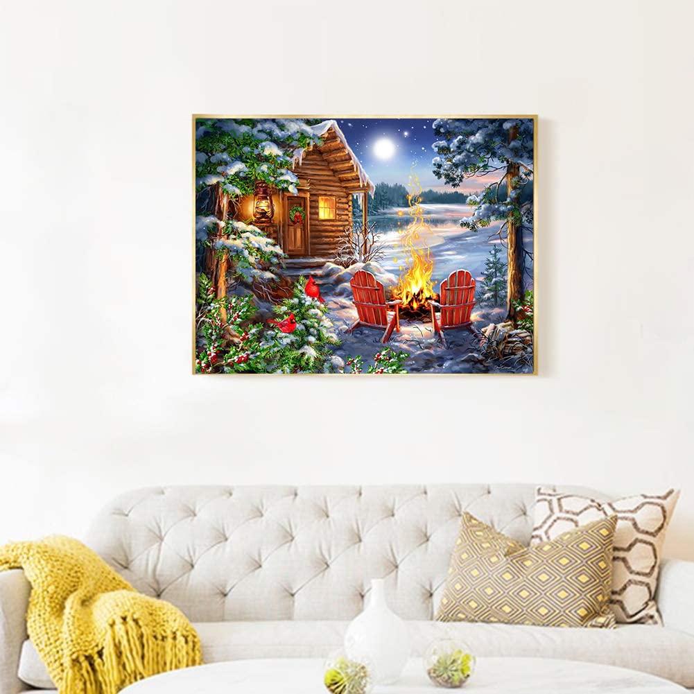 KEUASDV Diamond Painting Kits for Adults, Christmas Cabin 5D DIY Diamond Art Kits Full Drill Diamond Dots for Gift Wall Decor and Relaxation Gem Arts 12x16 inch