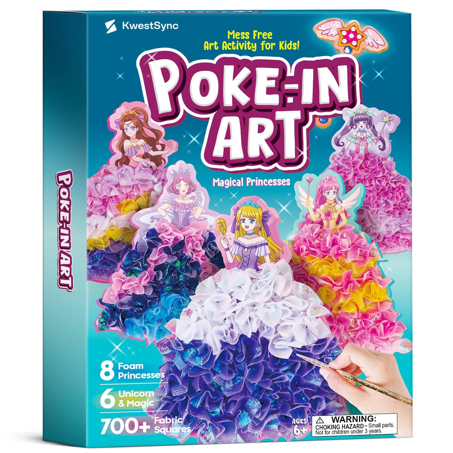 KwestSync Poke in Art Princess Crafts - DIY 8 Magical Princesses & 6 Accessories - Arts and Crafts for Kids Ages 6-8, 8-12, Birthday Gifts for Girls and Boys 6 7 8 9 Years Old