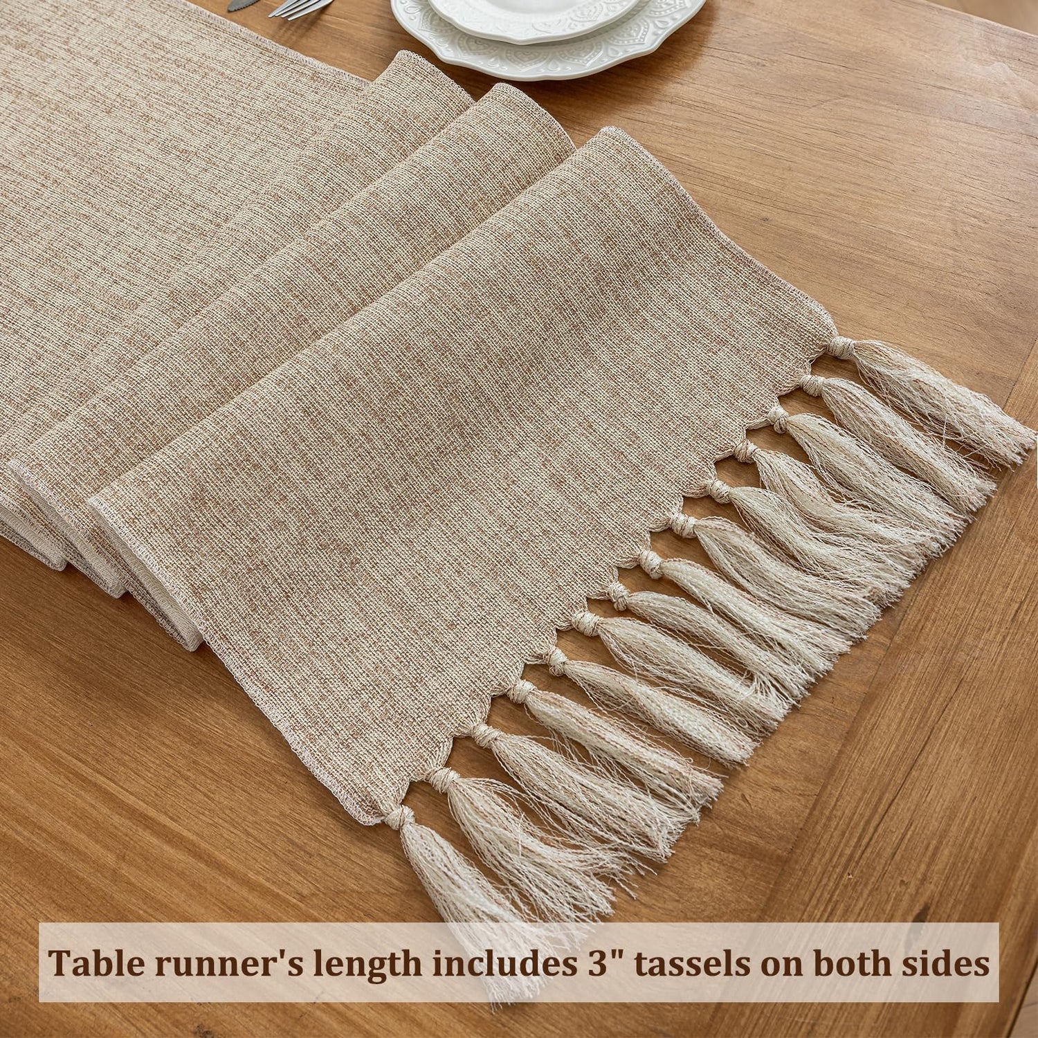 - 【Mixed Color Design】This table runner features a unique design with BROWN threads intricately woven into the overall BEIGE fabric. It creates a pleasing color combination and adds an elegant and chic charm to any table or dresser
