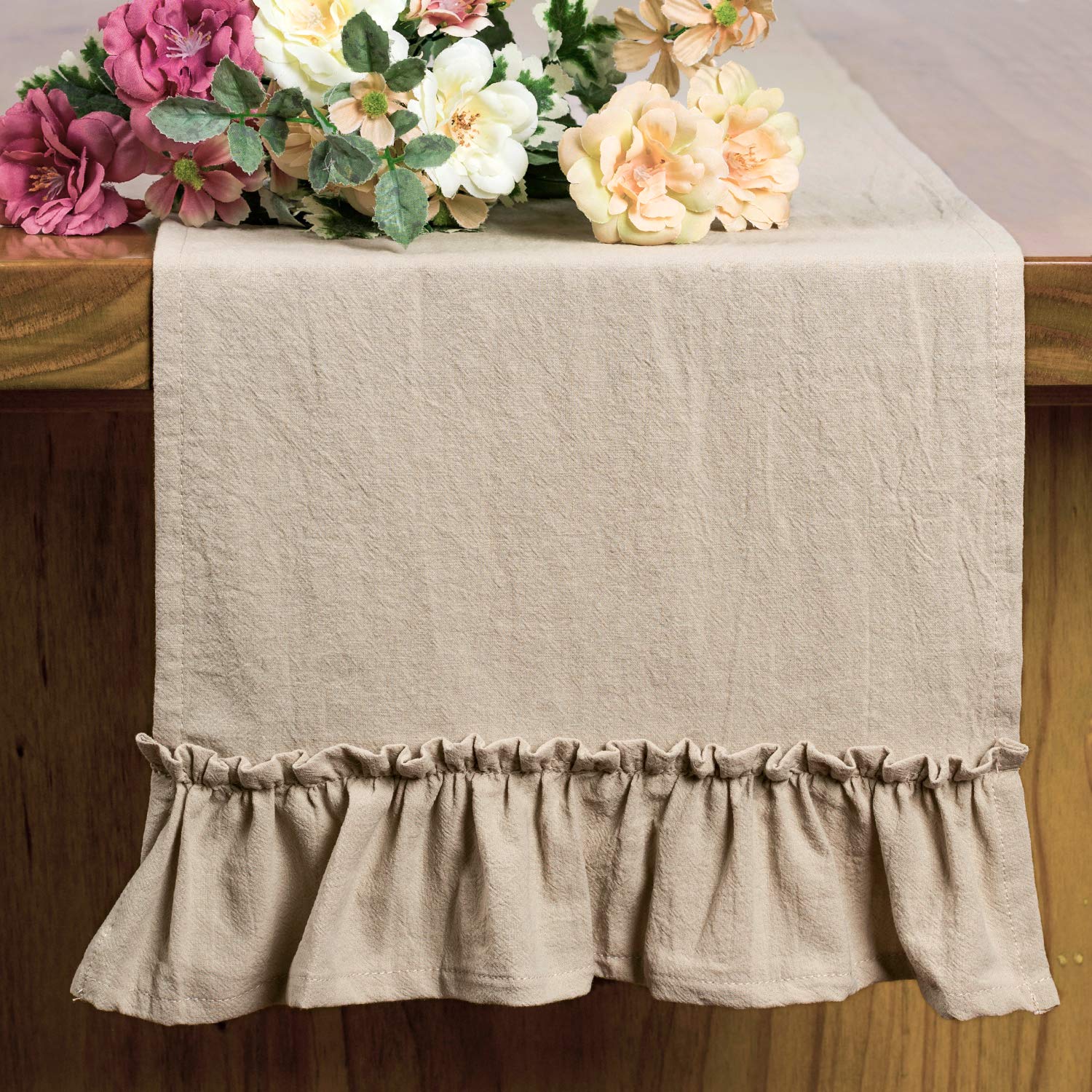 Letjolt Farmhouse Table Runner 72 Inches Long Shabby Chic Ruffled Table Runner Rustic Home Table Decoration for Baby Shower Bride Shower, Natural