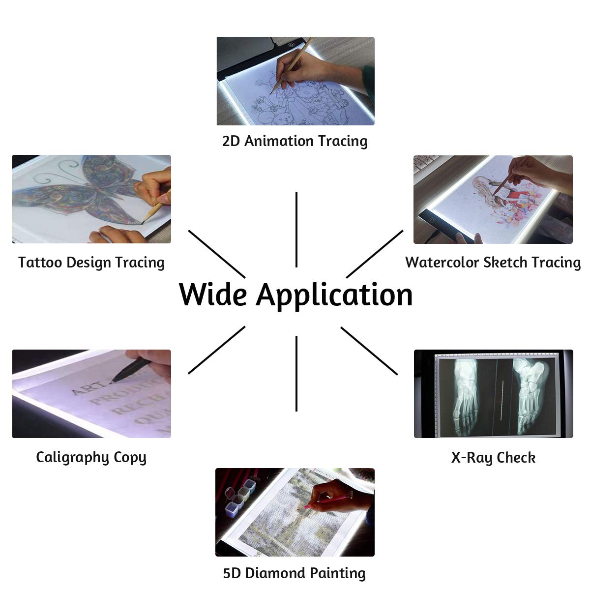 • Upgrade A4 LED Light Pad for Diamond Painting, The Diamond Painting tools supplies includes a diamond painting light pad A4 will help you see the small numbers