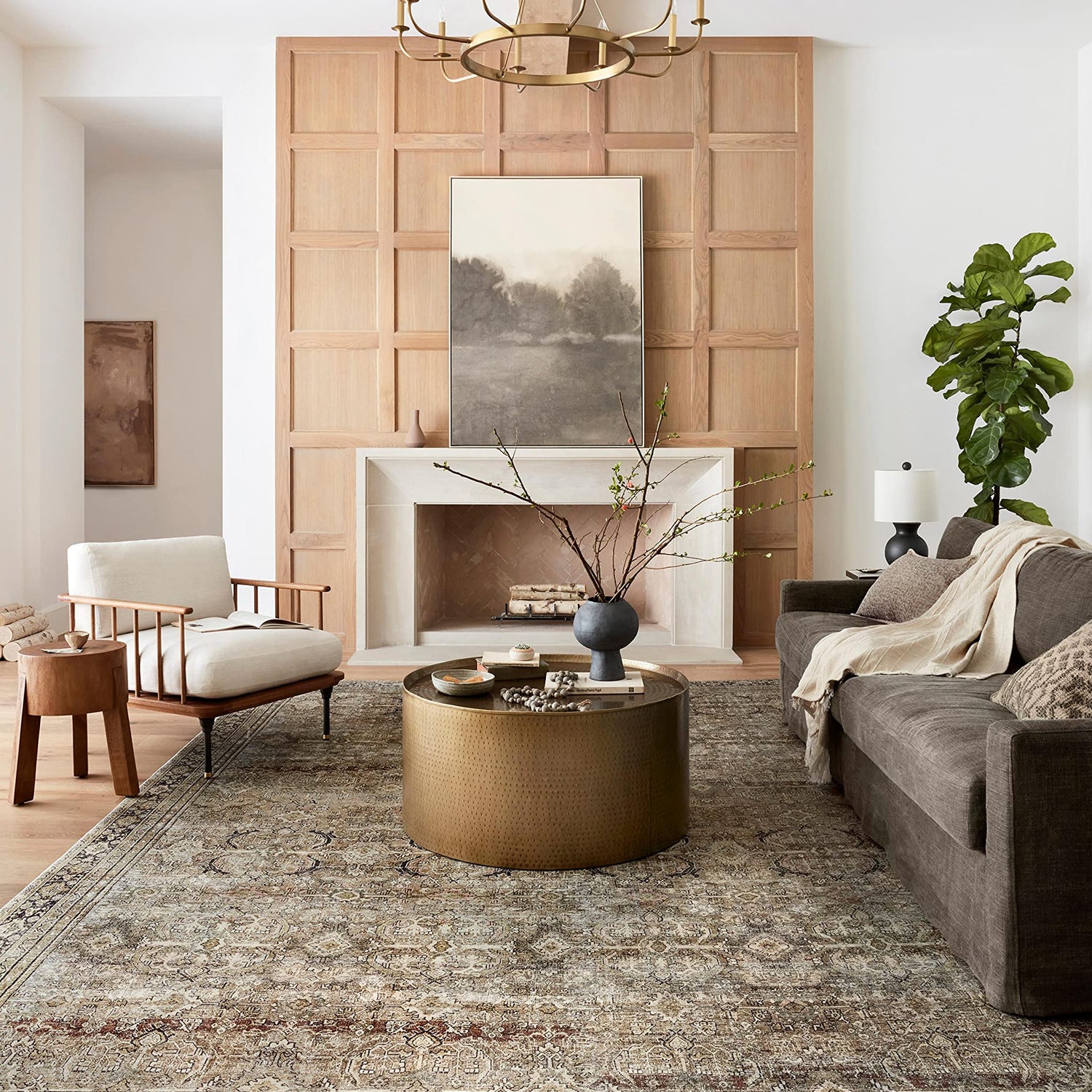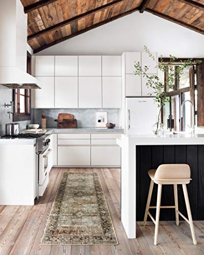 Loloi Layla Collection LAY-03 Olive/Charcoal 7'-6" x 9'-6" .13" Thick Area Rug, Soft, Durable, Vintage Inspired, Distressed, Low Pile, Non-Shedding, Easy Clean, Printed, Living Room Rug