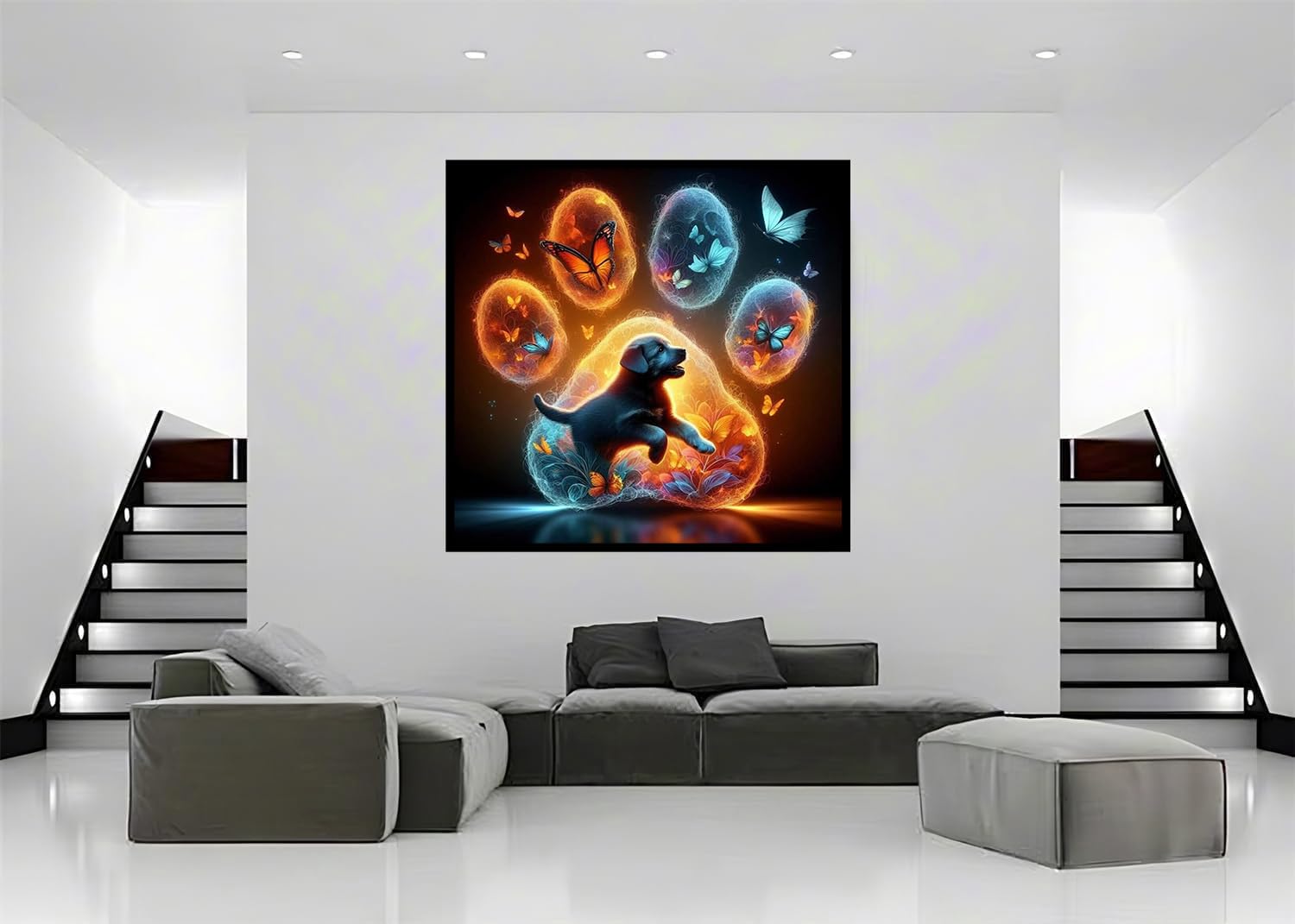 Lophomie Diamond Art Kits for Adults, 5D DIY Dog Paw Diamond Painting Kits for Adults Beginners, Diamond Dots Kits Gem Arts Crafts for Home Wall Decor 14x14 Inch