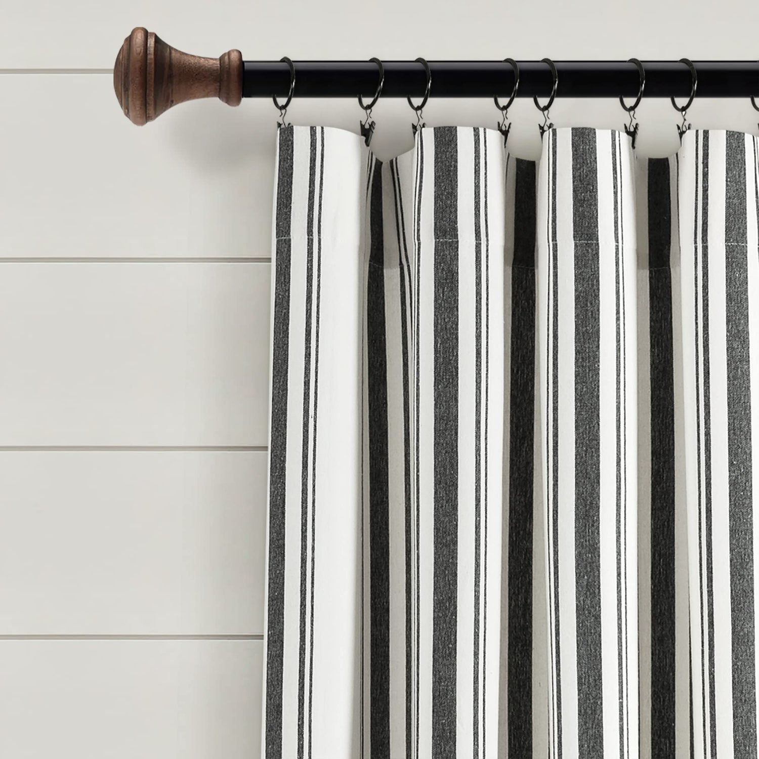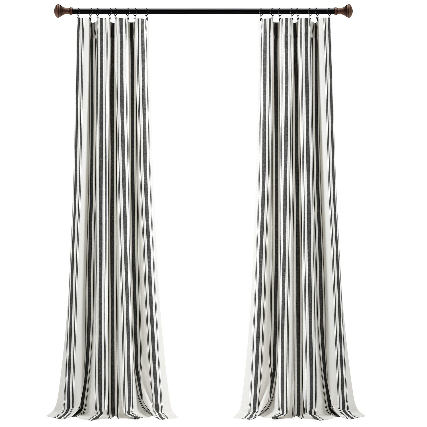 Lush Decor Farmhouse Stripe Yarn Dyed Cotton Window Curtain Panel Pair, 42" W x 84" L, Black - Classic Modern Rustic Charm - Eco Friendly Cotton Fabric
