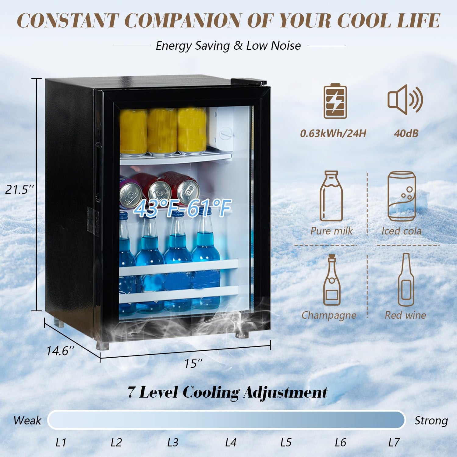 - [Bar Cabinet With Fridge]: Built-in 29L/1Cu.Ft beverage refrigerator cooler holds up to 22 cans of 330ml soda, beer, or several bottles of wine, temperature range 43°F-61°F, 7-level adjustable, 15in mini fridge makes you enjoy cold drinks anytime