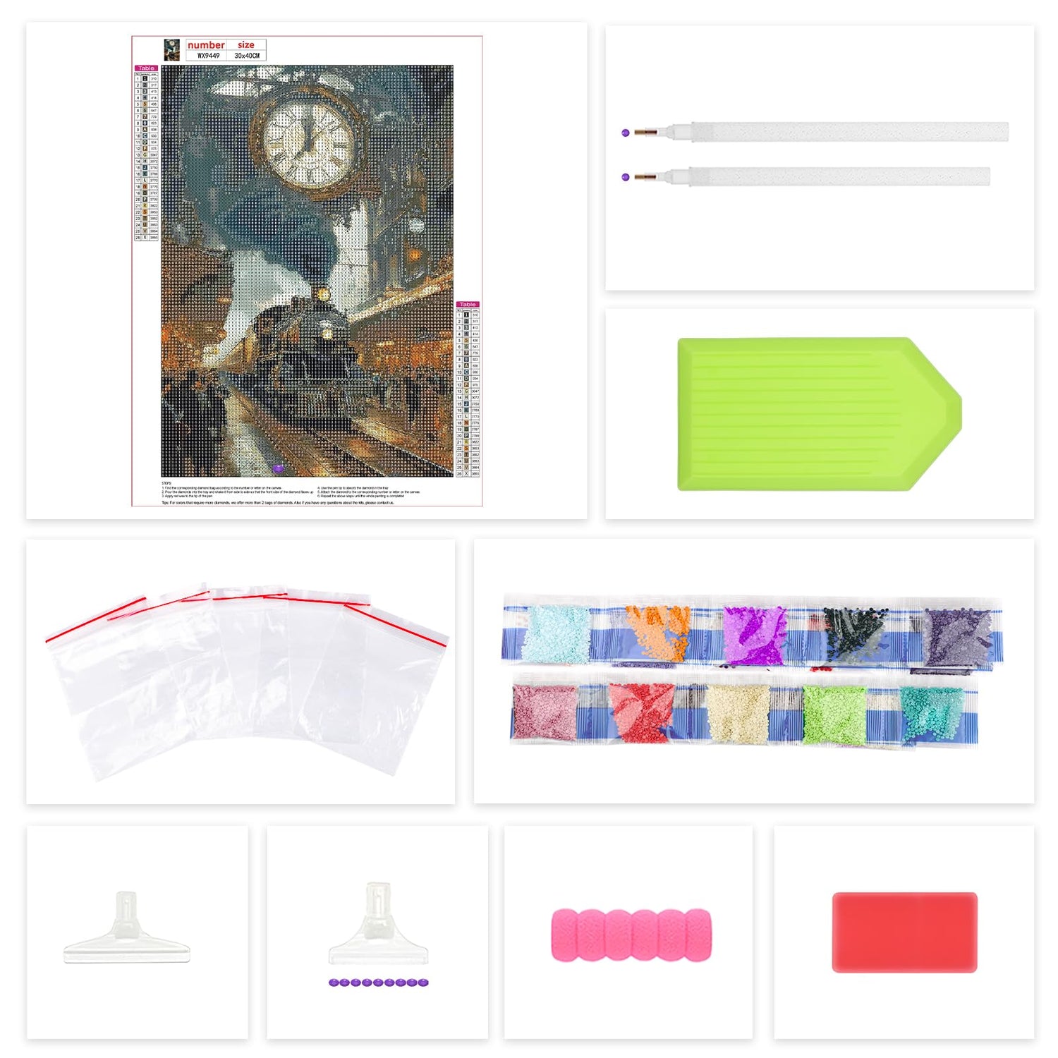- All Tools in Need Offered: Package includes 1 x HD printed canvas, 1 x pen, 1 x tray, 1 x glue clay, 5 x sealed bags and enough colorful diamonds. An extra 30% beads are provided so that the diamond painting kits can be completed smoothly