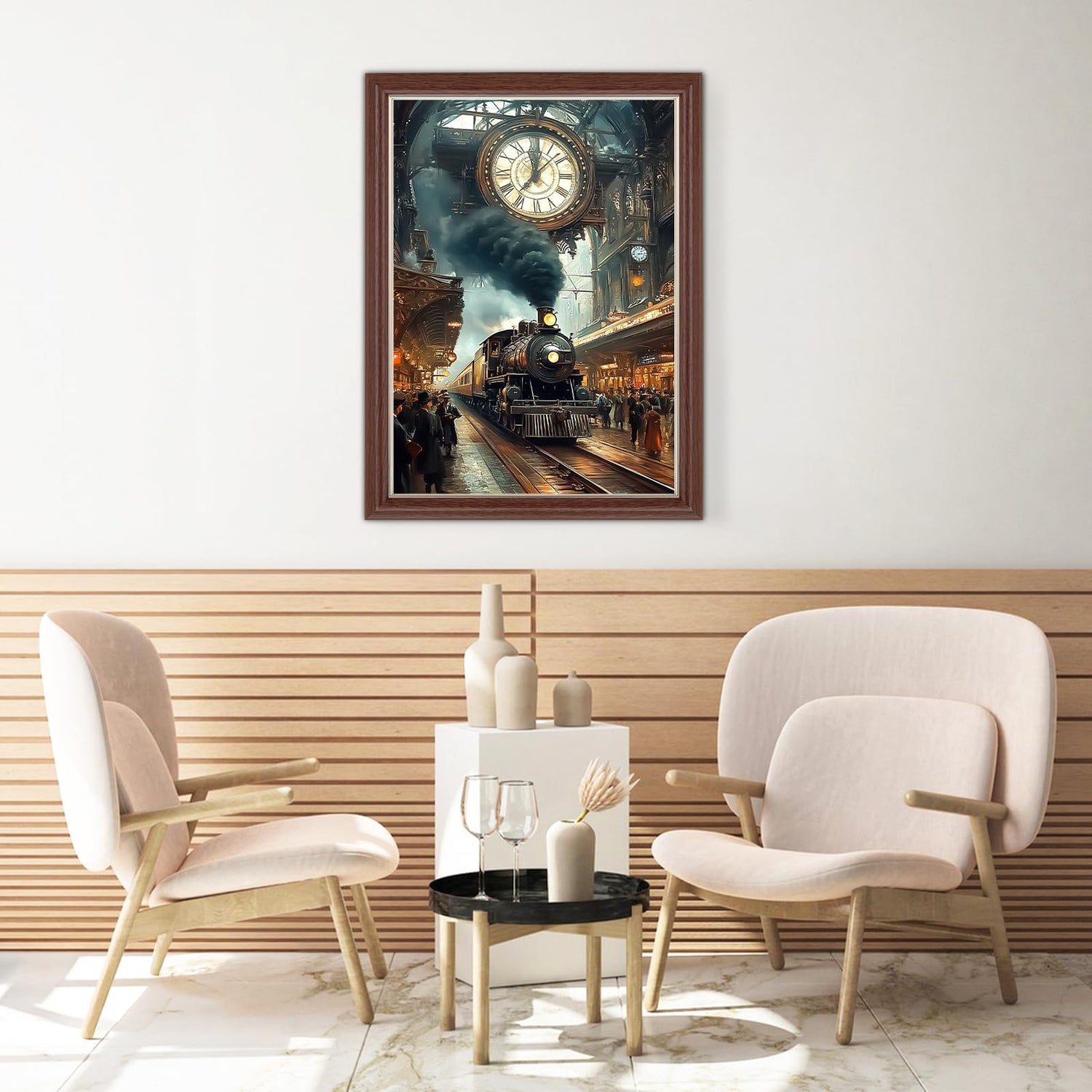 Lxmsja Train Station Diamond Art Kits for Adults, Clock DIY Full Drill Diamond Painting Kits for Beginners, 5D Gem Art Crafts for Adults, Home Wall Decor 12x16 inch