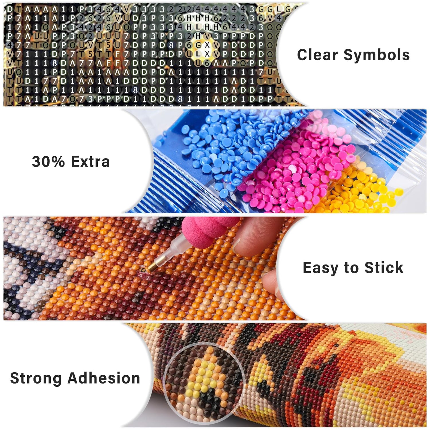 - HD Printed Canvas: There are clear numbering symbols and easy-to-follow instructions on diamond art kit with vivid colors, and beautiful images; The Canvas of the diamond painting kit is highly viscous without diamonds coming off easily