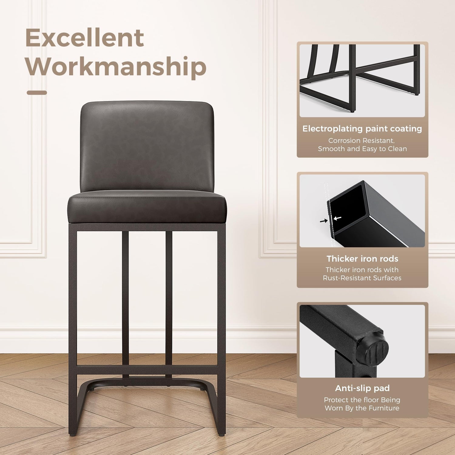 - 【Sturdy & Stylish Counter Stool】: Solid metal black frame with built-in footrest makes the counter stool more sturdy, max loading capacity up to 330 pounds, and could be used for years without problem. Nicely stitched faux leather with black steel base, the modern and minimalist design of the bar stool fits in with both contemporary and traditional decor.