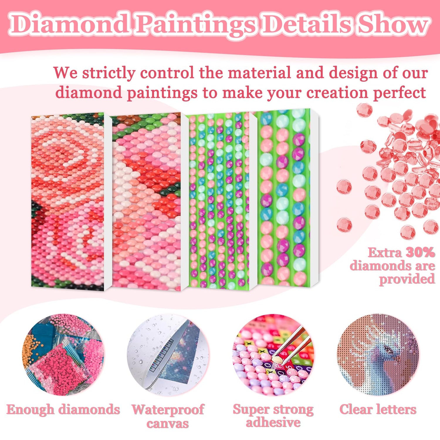 - EXCELLENCE IN QUALITY: Diamond paintings are made of high quality canvas, which is waterproof and has an even texture, making it easier to attach the diamonds and keep the pattern as it was originally intended. diamond art kits lettering symbols are clear and easy to read. Diamonds are durable, not easy to fade, individually packaged