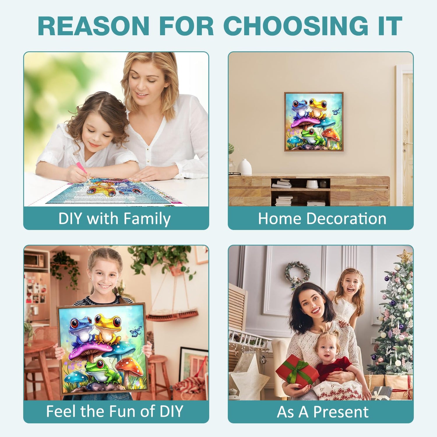 MEIYUDA Diamond Painting Kits for Adults, DIY Mushroom Diamond Art Kits for Beginners, 5D Animal Frog Diamond Art Painting Kit Gem Art Crystal for Home Wall Decor and Holiday Presents 12x12In