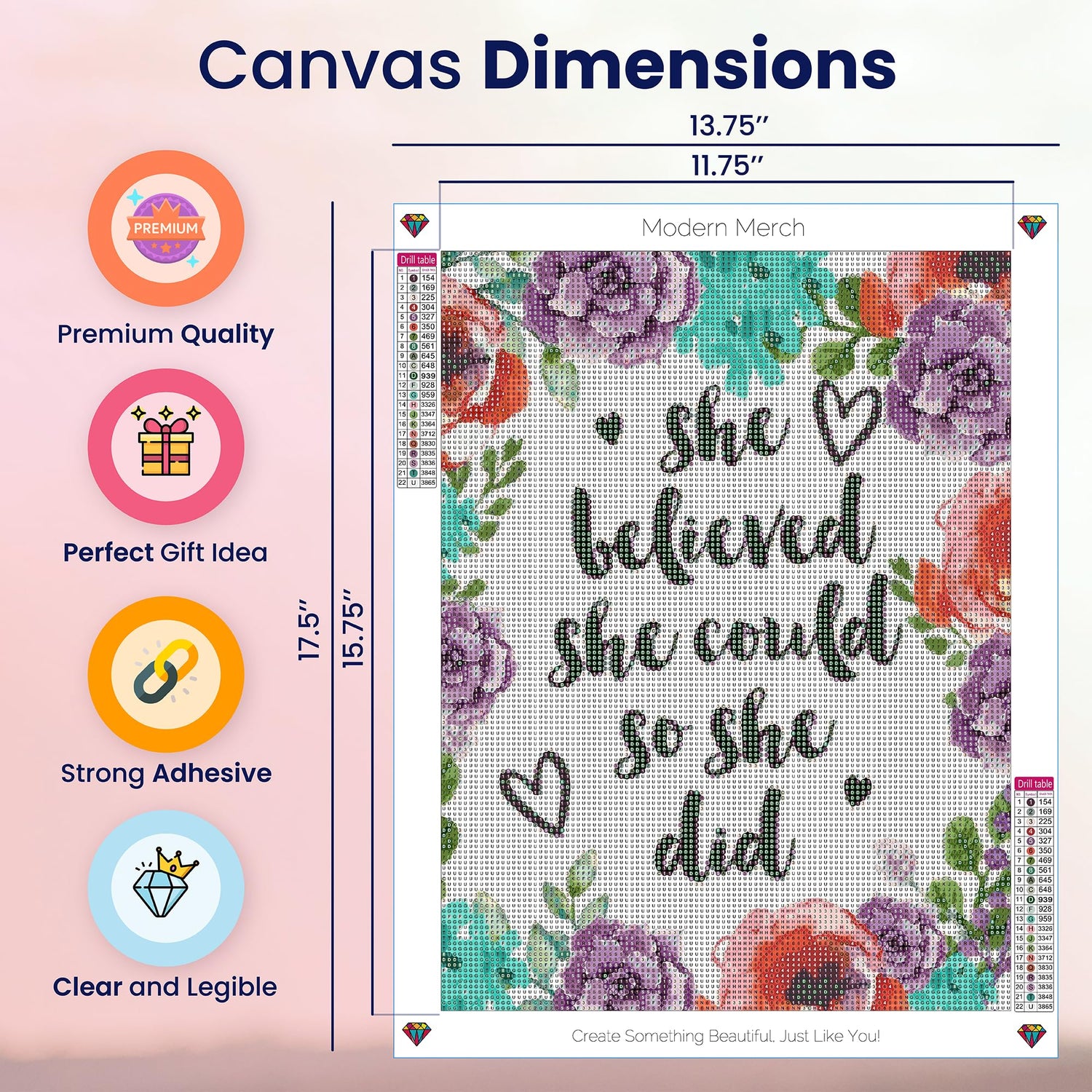 - Empowering Teen DIY Craft: Transform your space into a motivational sanctuary with this inspiring diamond painting kit. "She Believed She Could So She Did" encourages positivity and self-belief.