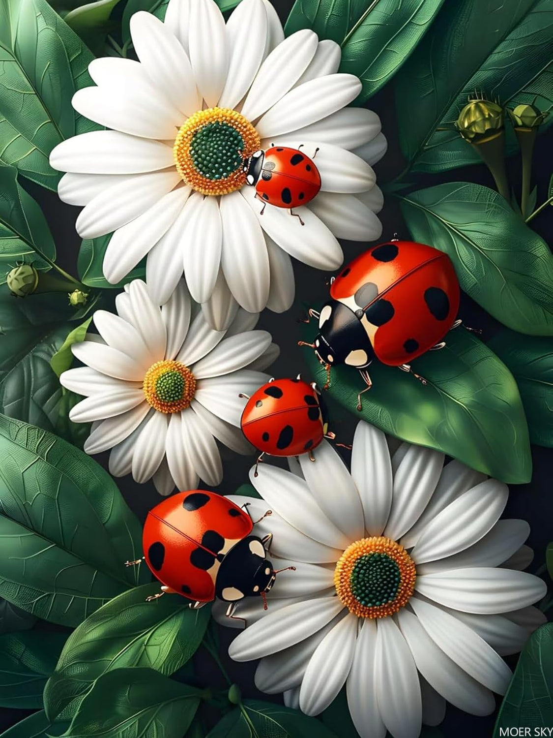 MOER SKY Beautiful Ladybugs Daisy Diamond Painting Art Kit for Adults, Spring Diamond Art Painting for Beginners, Full Drill Round Gem Art Flowers Painting 12x16 Inch
