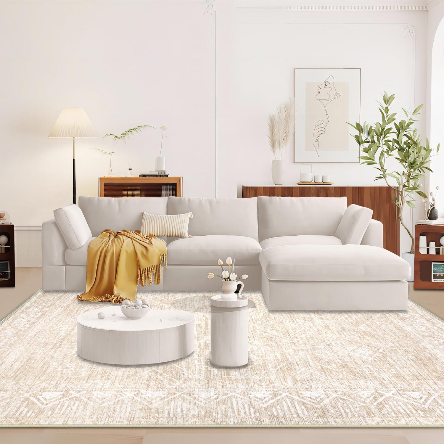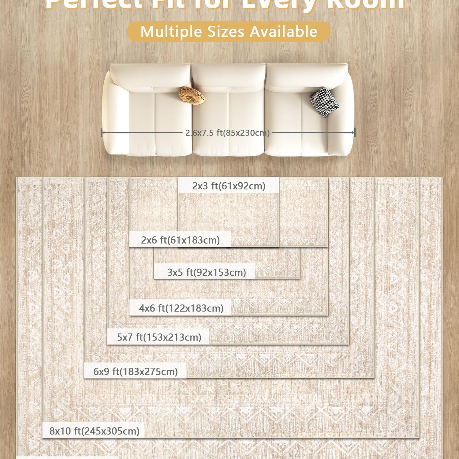 Moroccan Large Area Rug 5x7 - Soft Machine Washable Geometric Boho Distressed Farmhouse Rug Morden Stain Resistant Indoor Floor Carpet for Bedroom Dining Table Nursery Home Office (5 x 7, Beige)