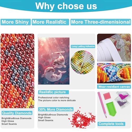• High Quality: our White Beluga Whales 5D painted diamonds have a unique luster,glittering;canvas material of painting has high definition,uniform texture, which can be maintained for a long time