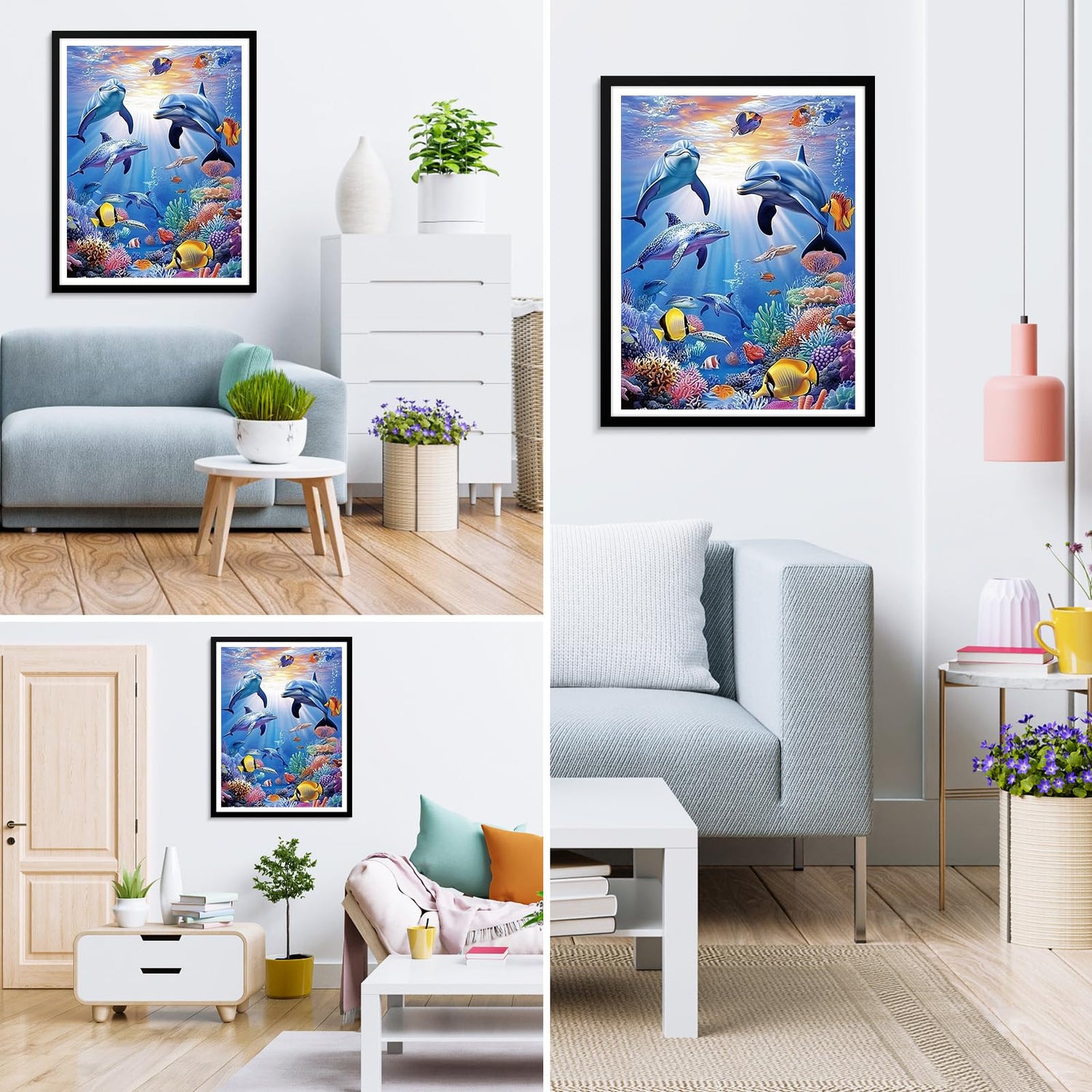 MXJSUA DIY Dolphin Diamond Painting Kits for Adults, Diamond Gem Art Painting for Beginners, Diamond Picture with Full Round Drill Dots Craft Set Gift, 12 * 16 Inch