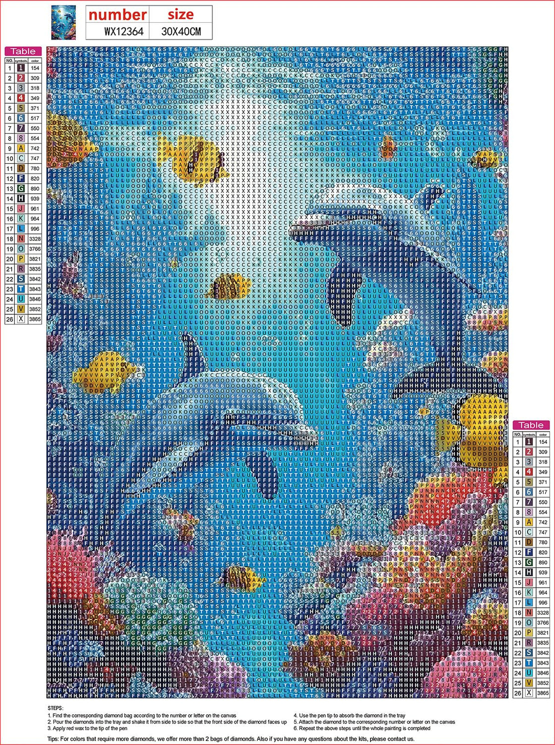 MXJSUA Dolphin Diamond Painting Kits for Adults, 5D Underwater World Diamond Art Kits for Beginners, DIY Full Drill Paint with Diamond, Home Wall Decor 12x16 Inch