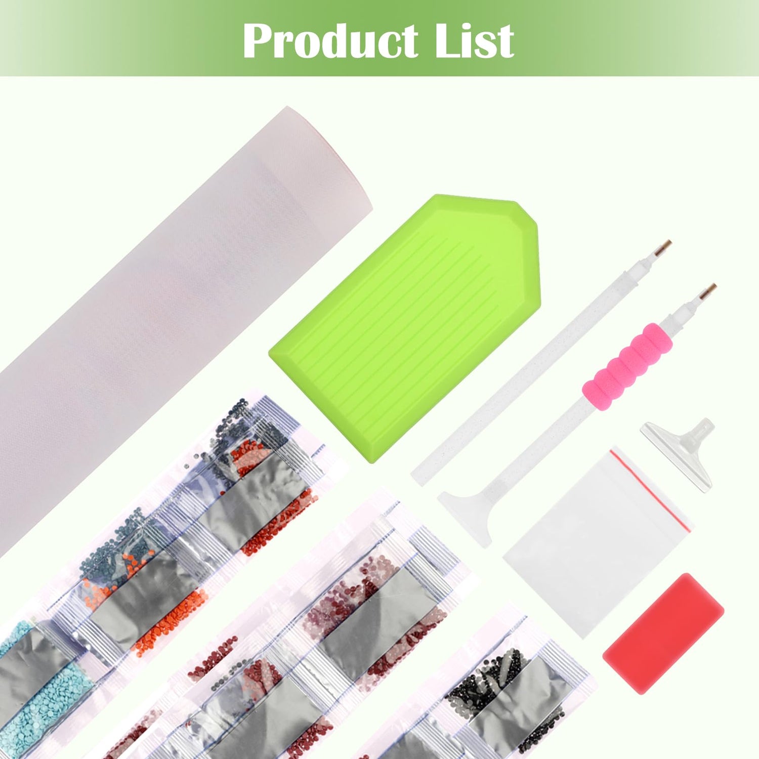 - Diamond Gem Art Painting Kits Contain All Necessary Tools: 1 high-definition canvas, 1 diamond tray, 1 big wax, 2 diamond pens, 1 replaceable correction pen, 5 ziplock bags, and enough round diamonds