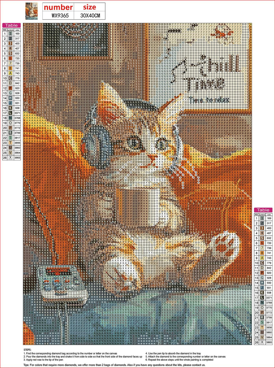 MXJSUA Relax Cat Diamond Painting Kits for Adults, 5D Cat Diamond Art Kits for Beginners, DIY Full Drill Crystal Gem Painting Kits for Home Wall Decor 12x16 Inch