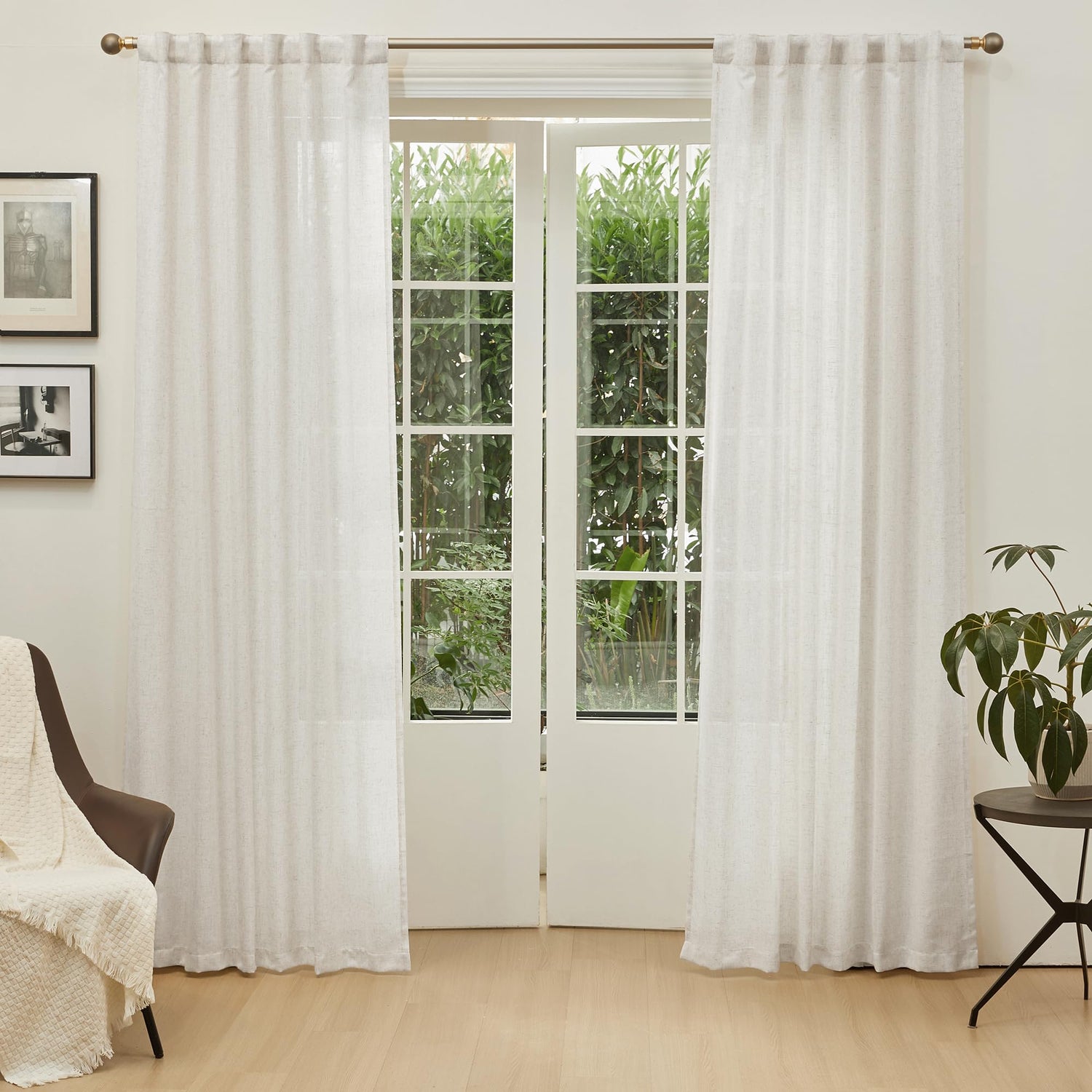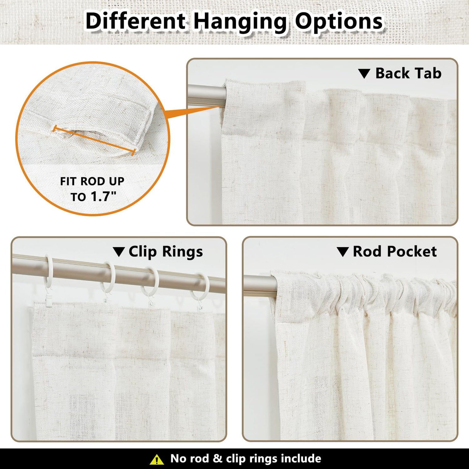 MYSKY HOME Linen Curtains for Living Room, Natural Semi Sheer Curtains & Drapes 84 inches Length 2 Panels Set Farmhouse Country Boho Style Back Tab Draperies for Sliding Glass Door, 50" Wide, Linen