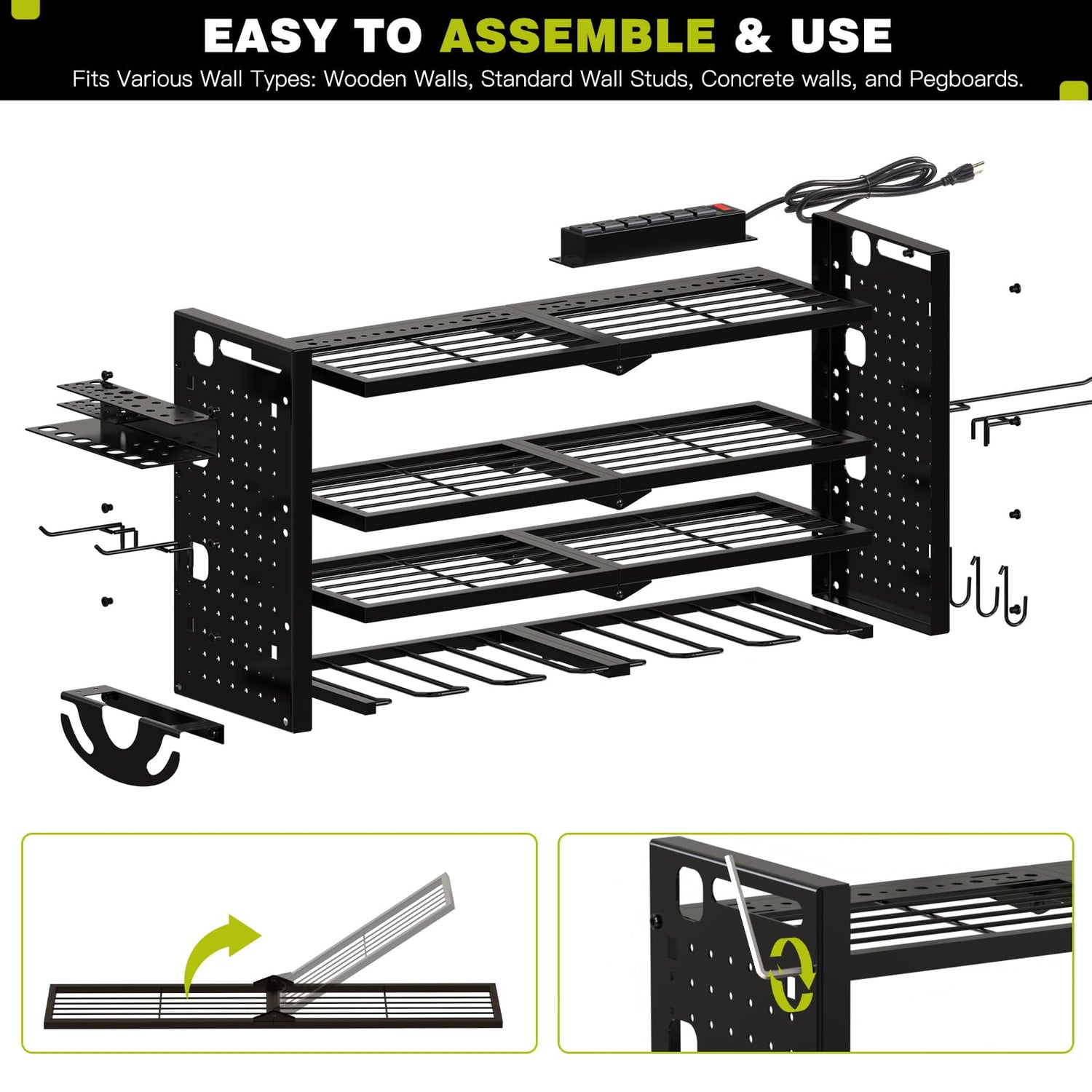 - Enhanced Storage Capacity:Perfect for garages and workshops, this 4-tier organizer neatly stores your tools and holds up to 6 drills on the bottom rack. Optimize your workspace for maximum efficiency